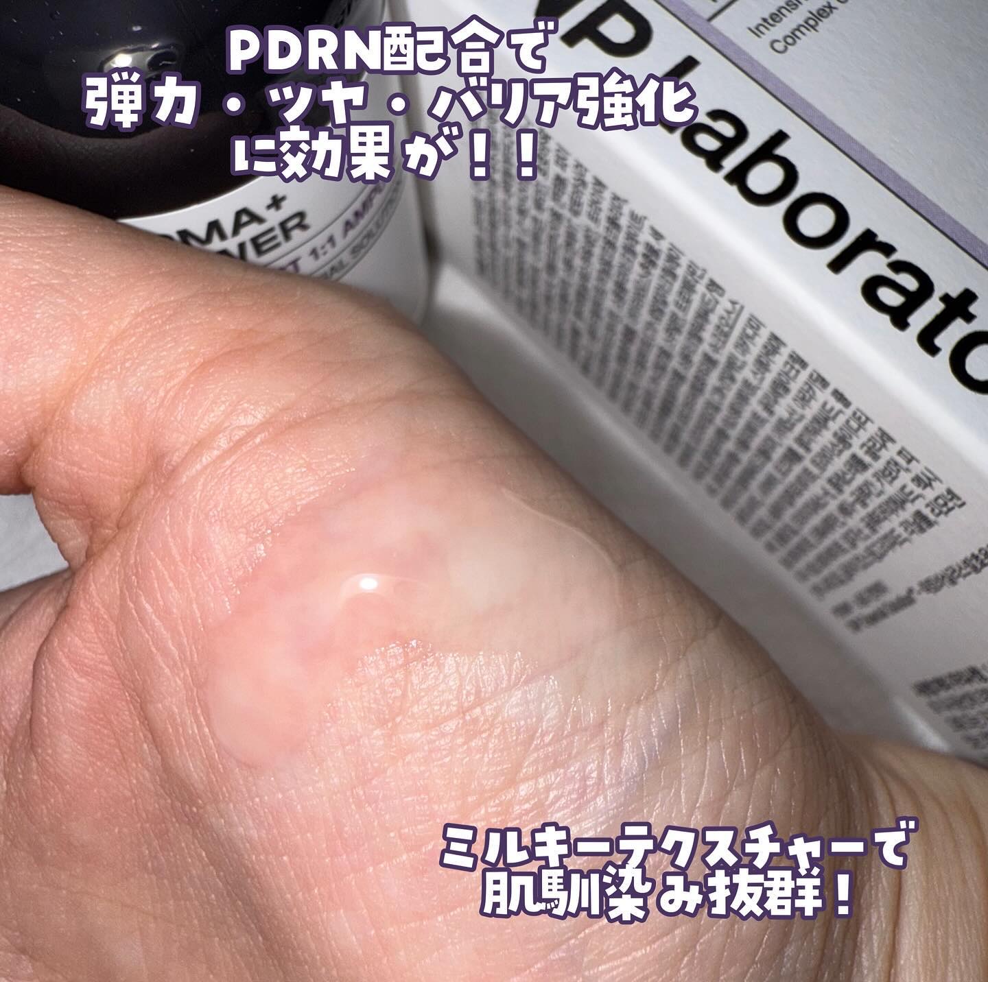 CNPの新作アンプルのひとつ、PDRN アクティブブースト1:1アンプル!バリア機能やキメにアプローチしてくれるアイテムなんだそう。 コラーゲン、スクアレン、アデノシン、ナイアシンアミドなどの成分を配合。弾力ケアや保湿、シワケア、皮脂調節などのサポートをしてくれるんだとか。 半透明でとろみのあるもっちりとしたテクスチャー。しっとりと潤いを与えてくれるような使用感。