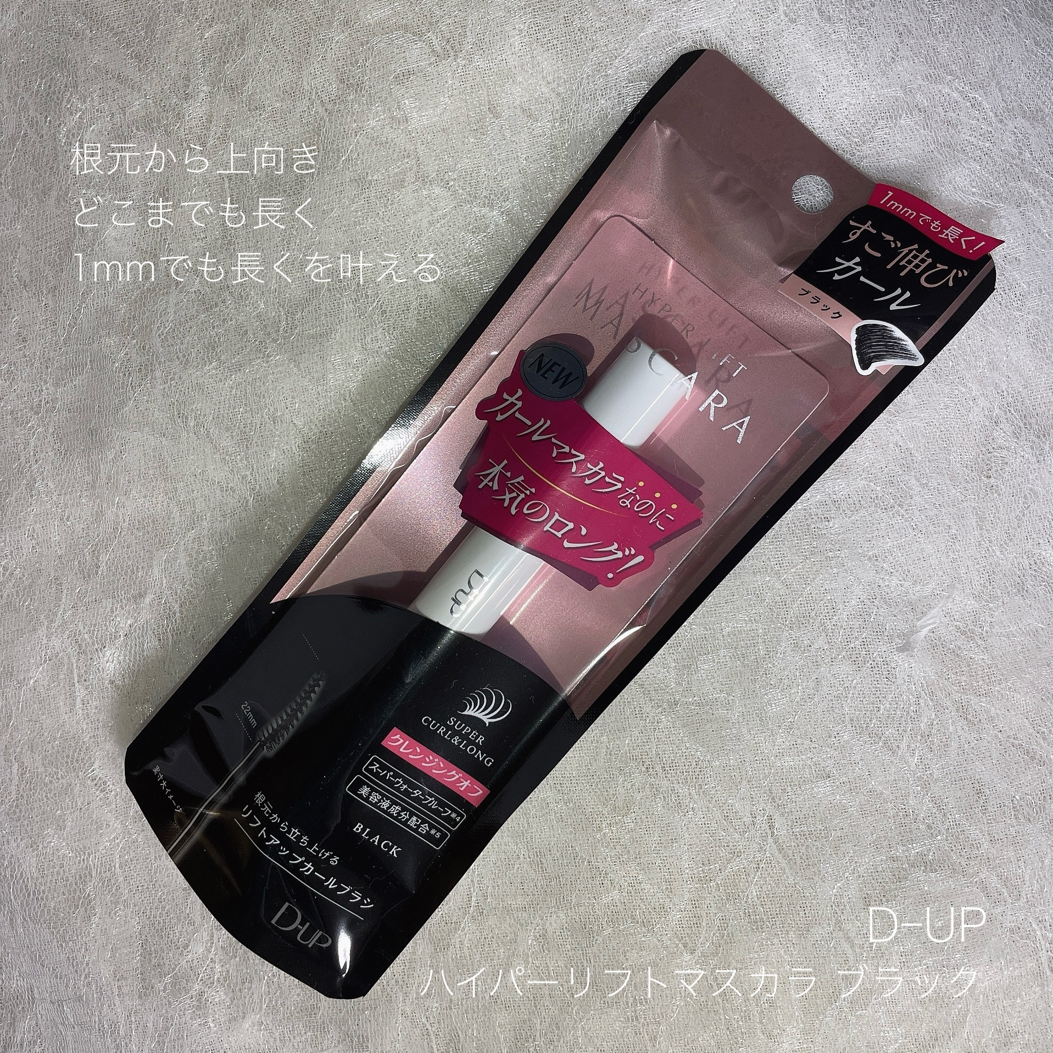 塗りやすさが良い👼🏻✨ D-UP(ディーアップ) ハイパーリフトマスカラ ブラック 【参考価格】¥1,650 ぐーんと伸びるマスカラ液で、短いまつ毛を1mmでも長くしてくれるカールマスカラ! ブラシがとにかく塗りやすいのが一番の推しポイントです◎