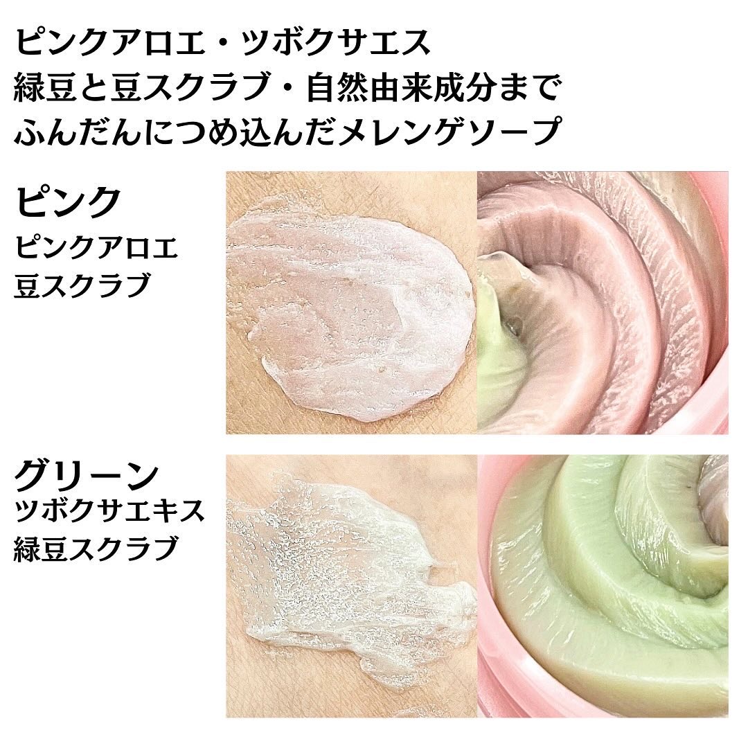 クレンジングフォーム+鎮静パック1つで完了! 自然由来成分をふんだんに込めたメレンゲソープ 水分72%配合でまだらな肌を鎮静🩷 𝗚𝗿𝗲𝗲𝗻 - ツボクサエキス、緑豆スクラブ 柔らかく粘り気のあるテクスチャーがメイクと老廃物までしっかり密着˖ ࣪⊹