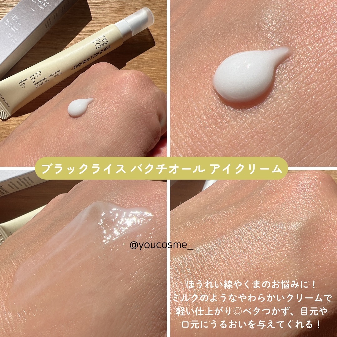 天然由来成分95%で目にしみない クレンジングオイル😊 ヌルつきも少なく軽い質感で使えます✨ マッコリのようなクリーミーなテクスチャー エッセンス😊 乾燥が気になる方にはオススメです✨ 100%植物由来の植物性レチノールのバクチオール アイクリーム😊 ベタつかないので目元やほうれい線にもたまりにくいです☺️
