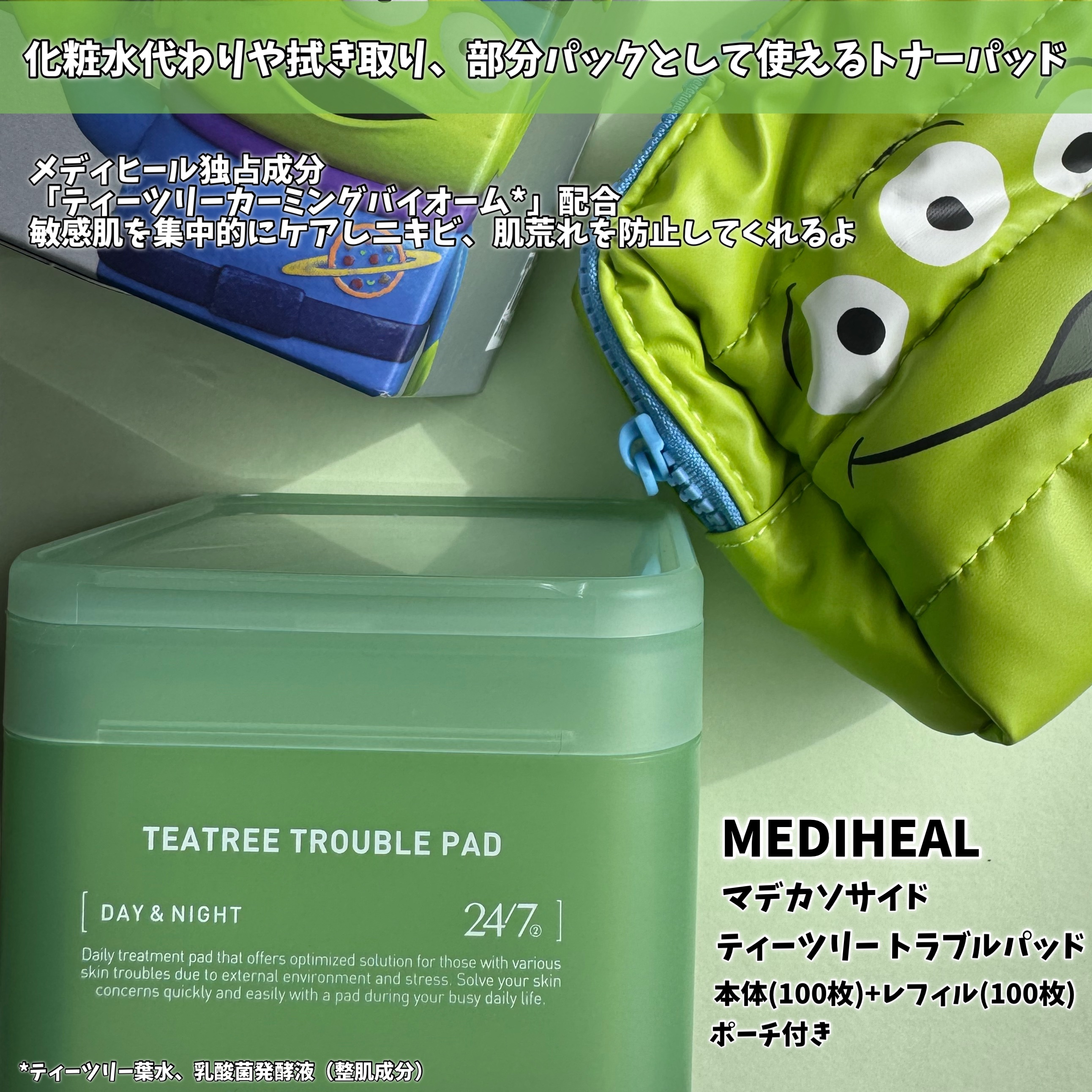 ティーツリー トラブルパッド 【ディズニーピクサーエディション】 ディズニーピクサーキャラクターとのコラボプロモショーンでスマホグリップをプレゼント🎁 敏感肌を集中的にケア☝️ ニキビケアまでできちゃいます。 さっぱりしたテクスチャーでべたつかずさらっとしたエッセンスでした☺️