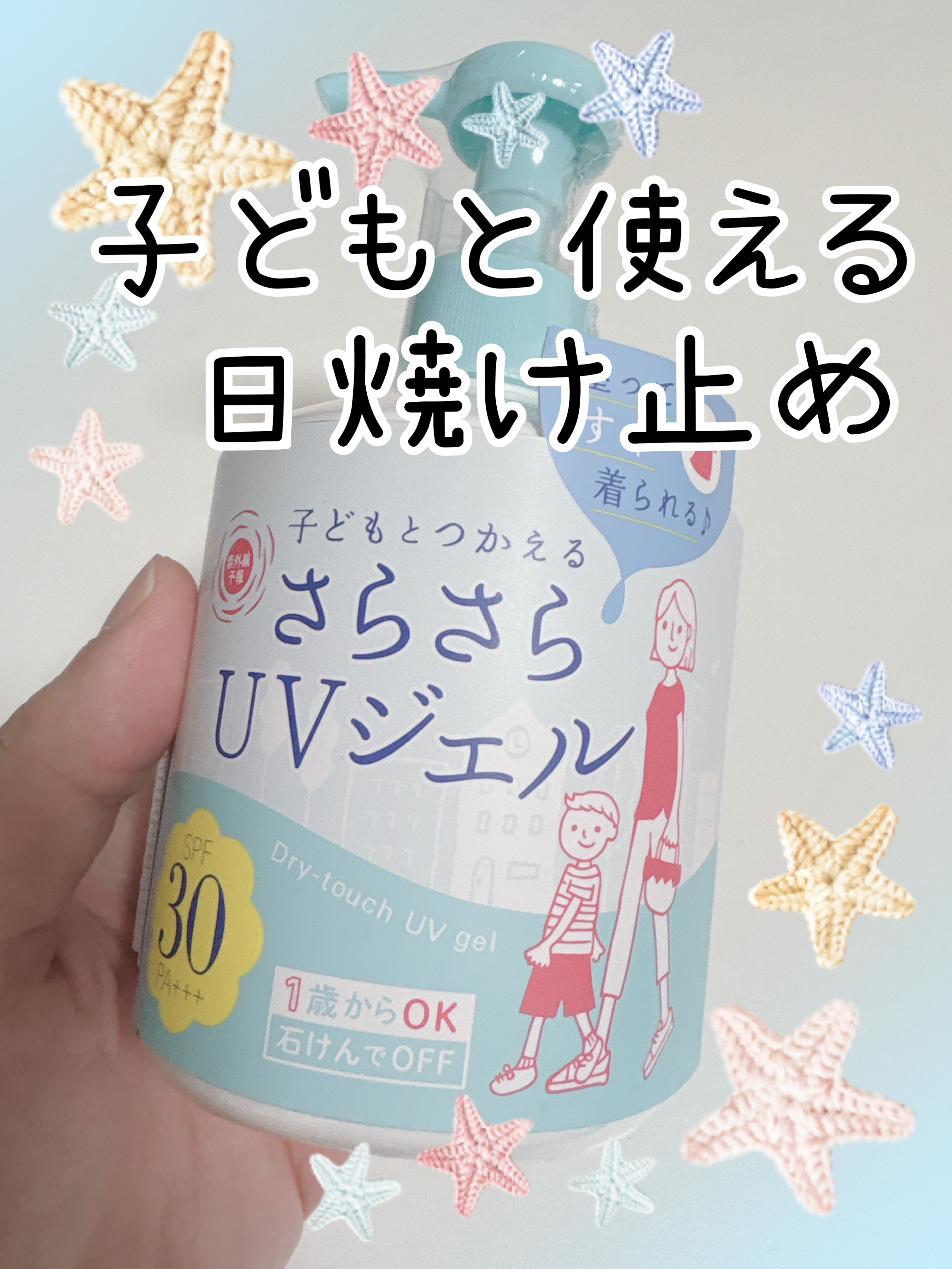 - シーズン限定品 塗ってすぐに服が着られるUVジェル。石けんで簡単OFF、大切なお肌をゴシゴシ洗わなくても落とせます。デリケートな子供の肌にもやさしい使い心地の無色素、無香料、無鉱物油、ノンパラベン、ノンアルコール。白くなりにくく、軽くてベタつきにくい透明ジェルがサッとなじんでカサつく肌のうるおいを守ります。さらさら素肌でお出かけしよう♪1歳から使えます。 ・うるおい成分アルブチン、コラーゲン、ヒアルロン酸配合 ・ほんのりオレンジ精油の香り ・SPF30、PA+++