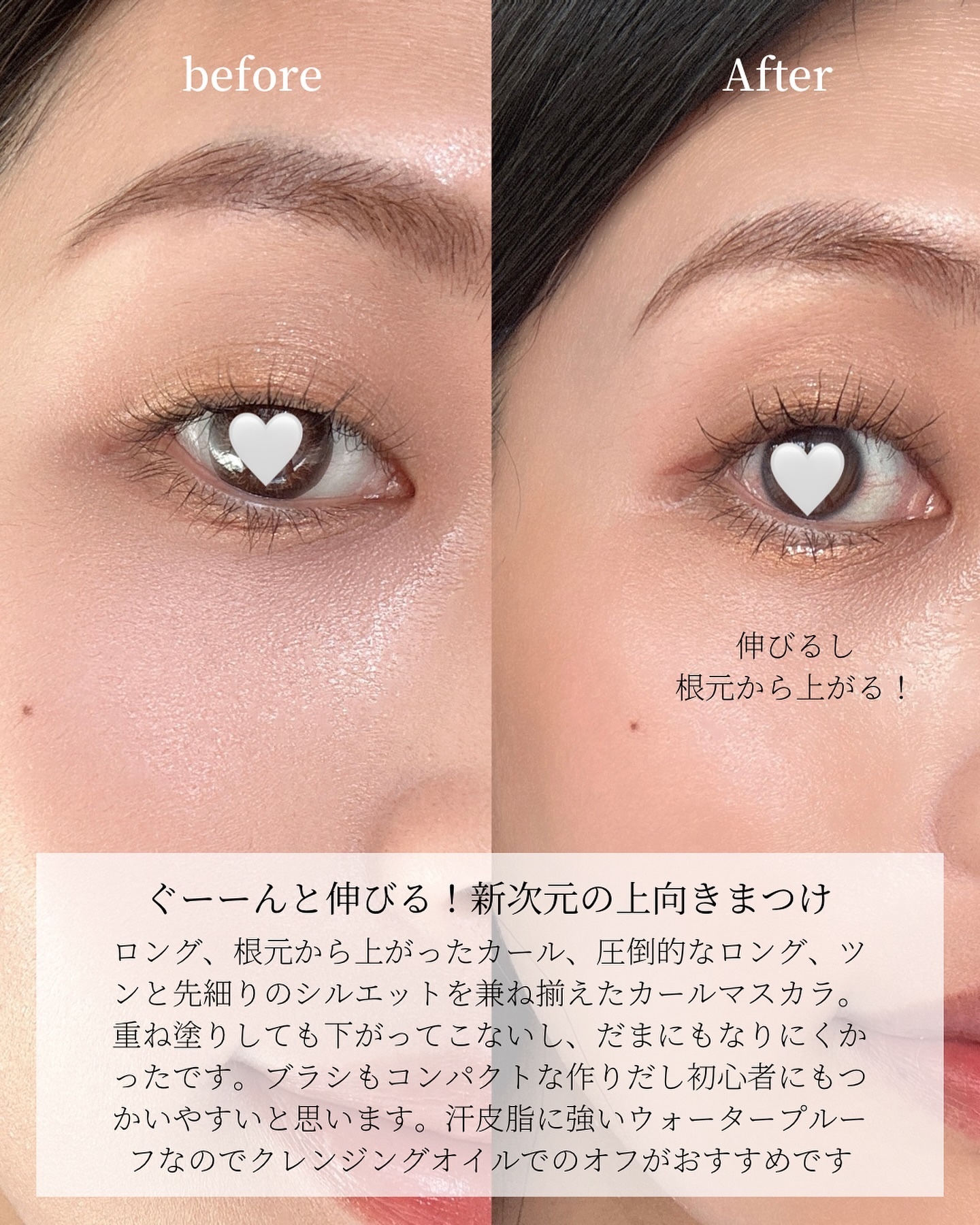 カールマスカラなのに本気のロング! すご伸びカールマスカラ登場 雨の日でもこれ1本で私の直毛まつ毛も朝から晩までしっかりカールキープしてくれたの! ぐーんと伸びるマスカラ液も特徴。2種の長さの異なるファイバー配合でファイバーが隙間なく絡んでロング感もすんごい♡
