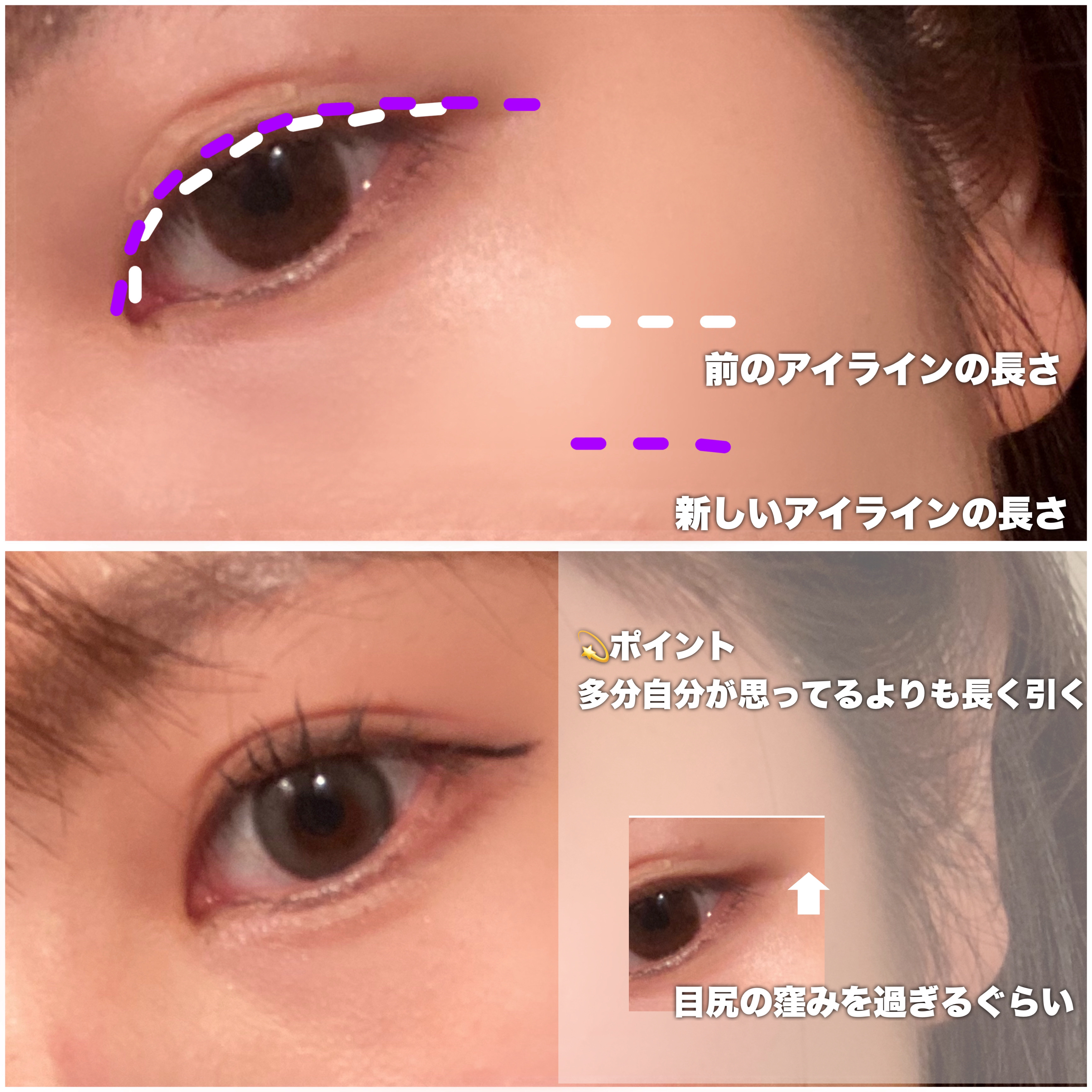 ナチュラルに盛れるアイラインの引き方。全体にアイラインを引くより、目尻だけの方が二重幅も広く見えるしナチュラルなのにしっかり盛れる気がします👀 個人的には少し抜け感のあるダークフィグというカラーが1番お気に入りです! D-UPのアイライナーはカラーも豊富で落ちにくいのでだいすきです!!