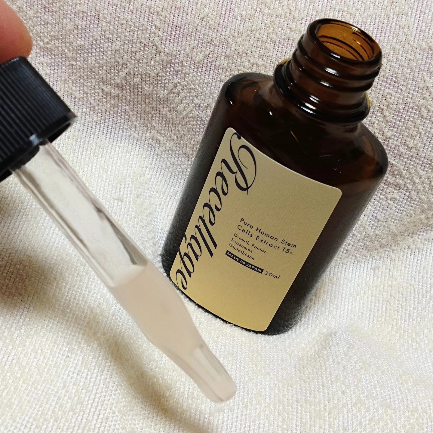 濃密でなめらか優しいテクスチャーです 浸透力&保湿力Good◎👍 ちょうど良いしっとり感とハリツヤ感 ヒト幹細胞培養液にはコラーゲンやヒアルロン酸などの皮膚組織をサポートする成長因子