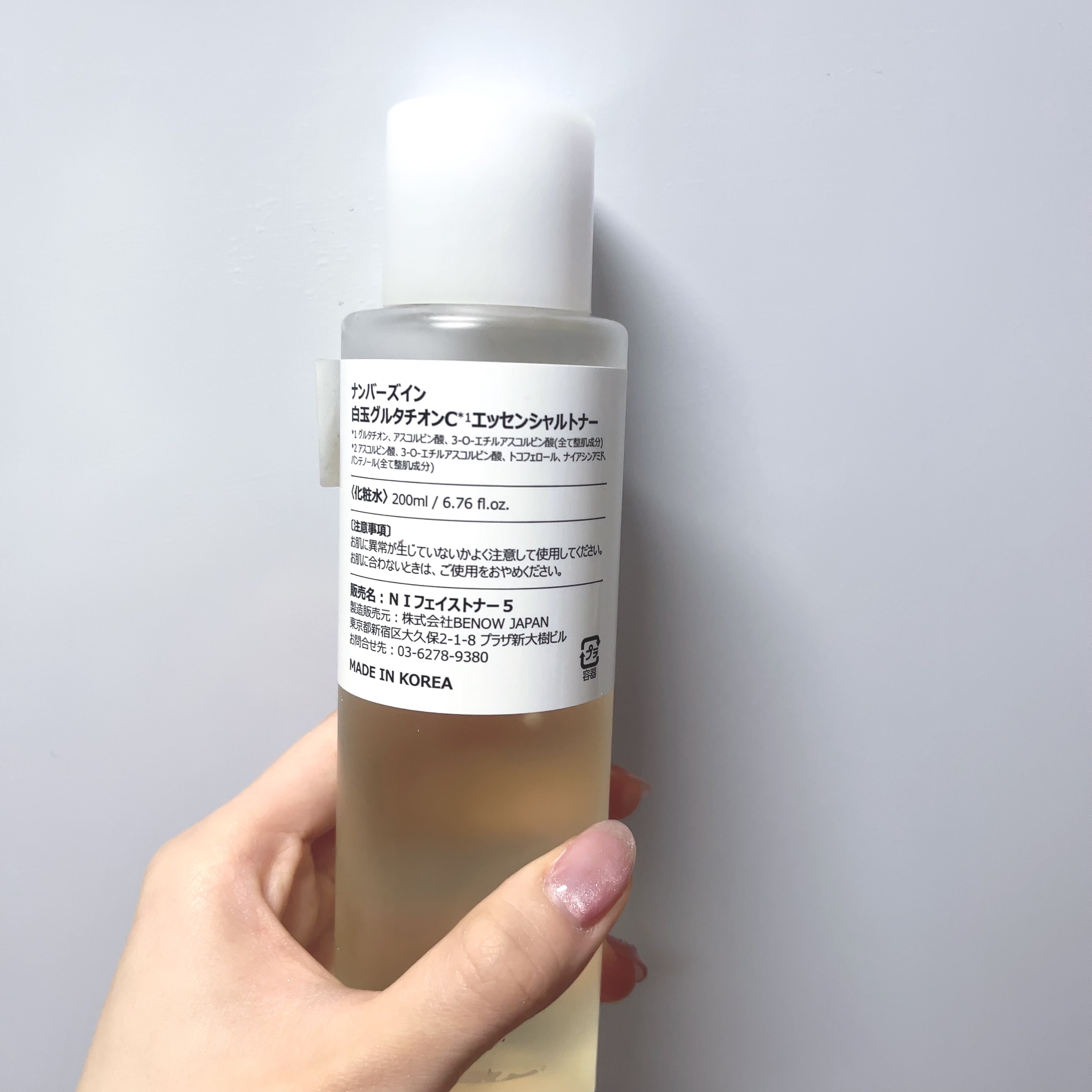 疲れ果ててくすんだ肌が光り輝くように! 高含量の高純度グルタチオンとビタミンCをはじめとする美白シナジー成分が乾燥してくすんだ肌に生気を与える疲労回復ビタミン点滴トナー 大人気のナンバーズイン5番シリーズ 年中使える使用感でお気に入り! メイクのりが良い💓 保湿はされるけどべたべたしないし一年中使いやすいと思う🫶