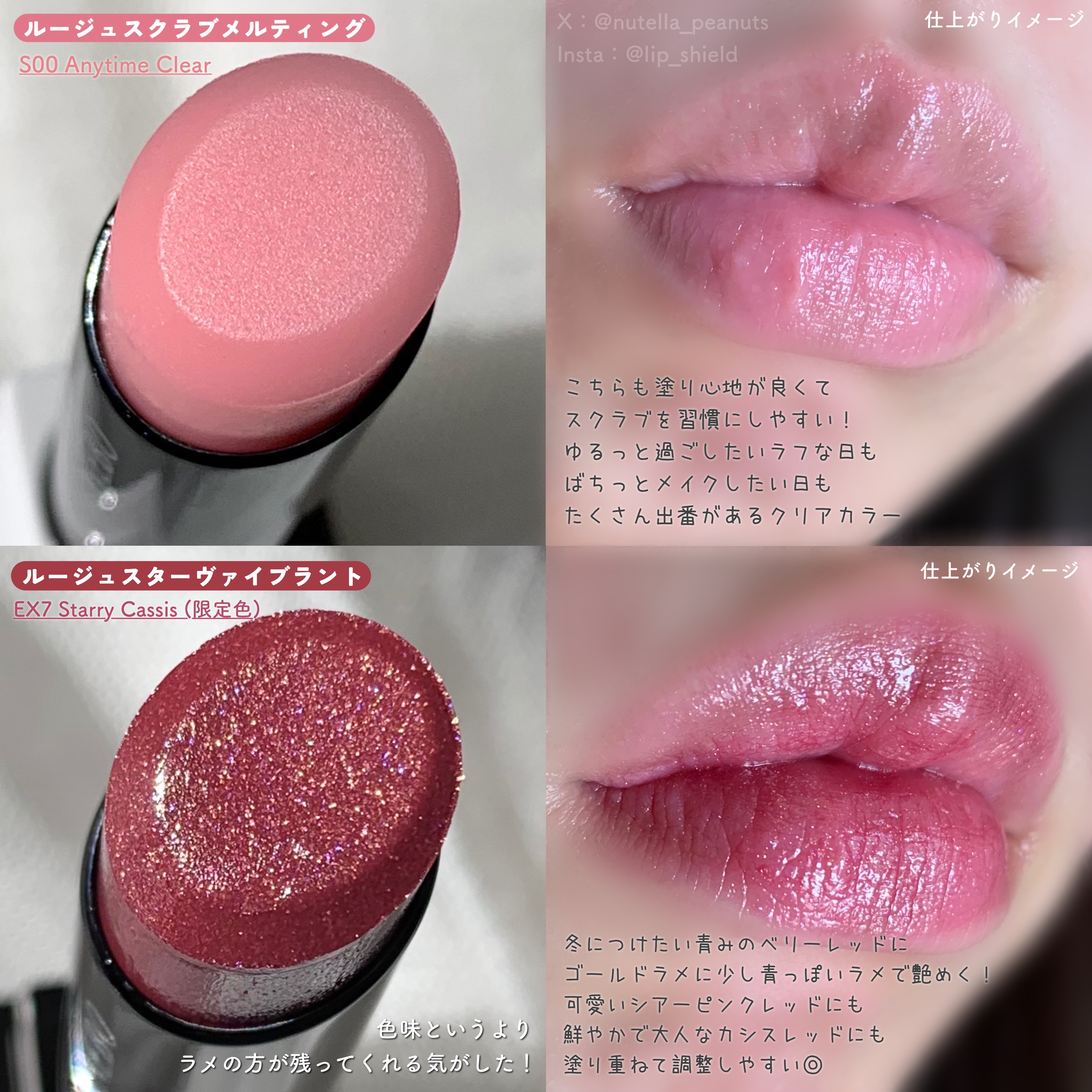 落ちにくいデパコスリップの代表格💄 年始の発売以降、爆発的人気となったKANEBOの“ルージュスターヴァイブラント”から、10/4に待望の新作が登場するよ👏👏👏 微細なパール&鮮やか発色で、塗るだけでテンションが上がる↑↑↑ 心躍るホリデーシーズンにたくさん使いたい💋 新技術をプラス❣️ スクラブが溶け、角質を整える極厚なツヤ膜を形成!美粘膜のようなぷるんと仕上げのスクラブリップ💄