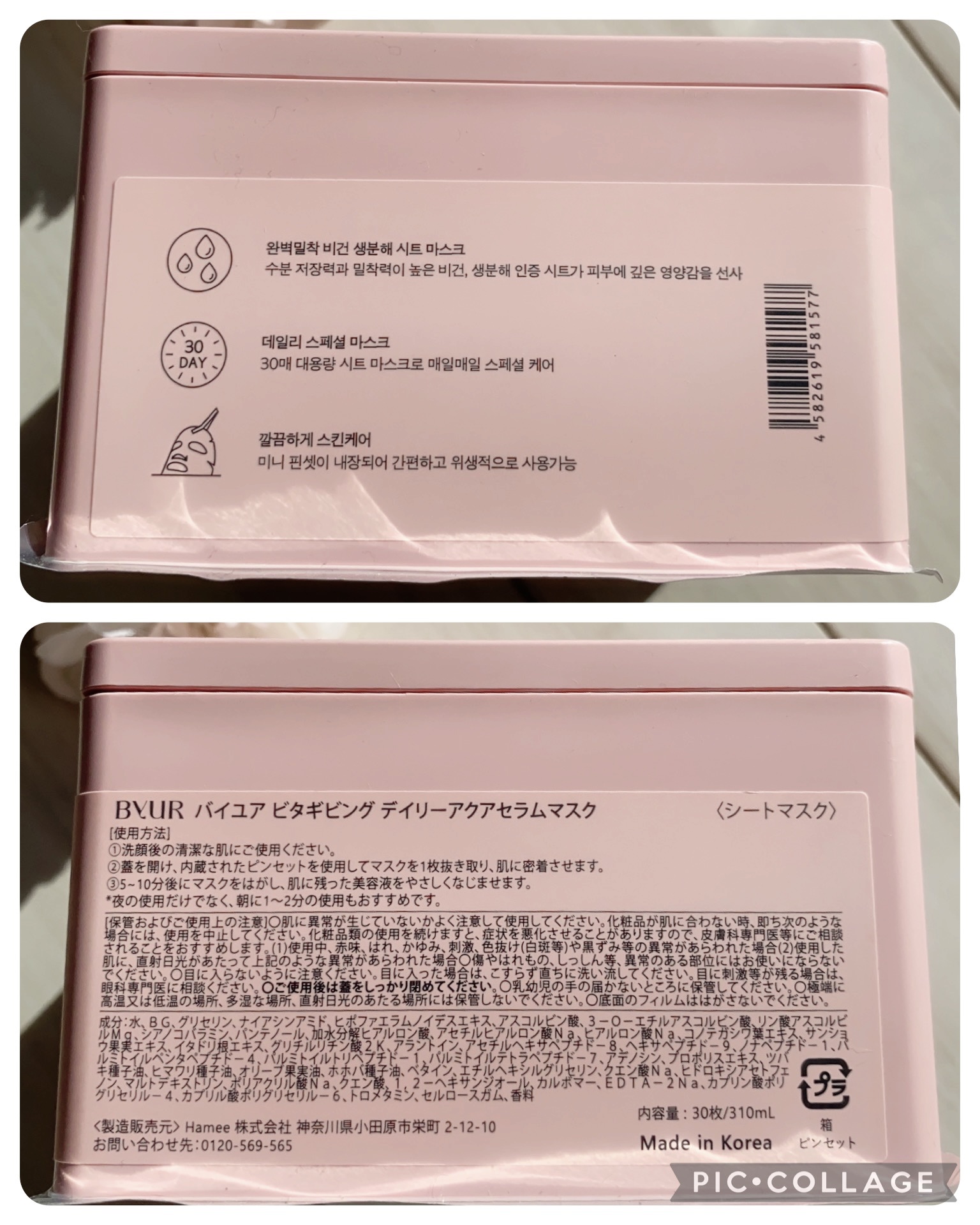 - <30枚> 水、BG、グリセリン、ヒアルロン酸Na、加水分解ヒアルロン酸、カルボマー、香料、リン酸アスコルビルMg、グリチルリチン酸2K、ホホバ種子油、オリーブ果実油、エチルヘキシルグリセリン、ツバキ種子油、アスコルビン酸、セルロースガム、クエン酸、アセチルヒアルロン酸Na、ベタイン、ポリアクリル酸Na、パルミトイルテトラペプチド-7、パルミトイルトリペプチド-1、3-O-エチルアスコルビン酸、パンテノール、イタドリ根エキス、1,2-ヘキサンジオール、アラントイン、シアノコバラミン、ヒマワリ種子油、EDTA-2Na、クエン酸Na、ヘキサペプチド-9、アセチルヘキサペプチド-8、ナイアシンアミド、パルミトイルペンタペプチド-4、トロメタミン、アデノシン、カプリル酸ポリグリセリル-6、マルトデキストリン、ヒドロキシアセトフェノン、プロポリスエキス、サンショウ果実エキス、カプリン酸ポリグリセリル-4、ヒポファエラムノイデスエキス、コノテガシワ葉エキス、ノナペプチド-1