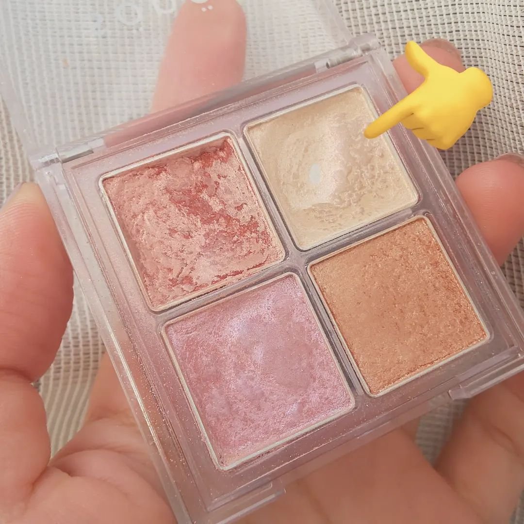 初めて見た時から頭から離れず 今年初コスメとしてお迎えしたイノセントブルーム。完全なる春満開なカラーでめちゃくちゃ可愛いです👏 全て発色もいい! 左上のカラーはピンク感強め。透け感のあるピンクのキラキラカラー。右上はしっかりピンク。発色が良いのでチークとしても良さそう!左下はしっかりめのオレンジ。ハッキリとオレンジに発色してくれる。右下はイエローのキラキラ。かなりキラッキラしていてアクセントにぴったり!