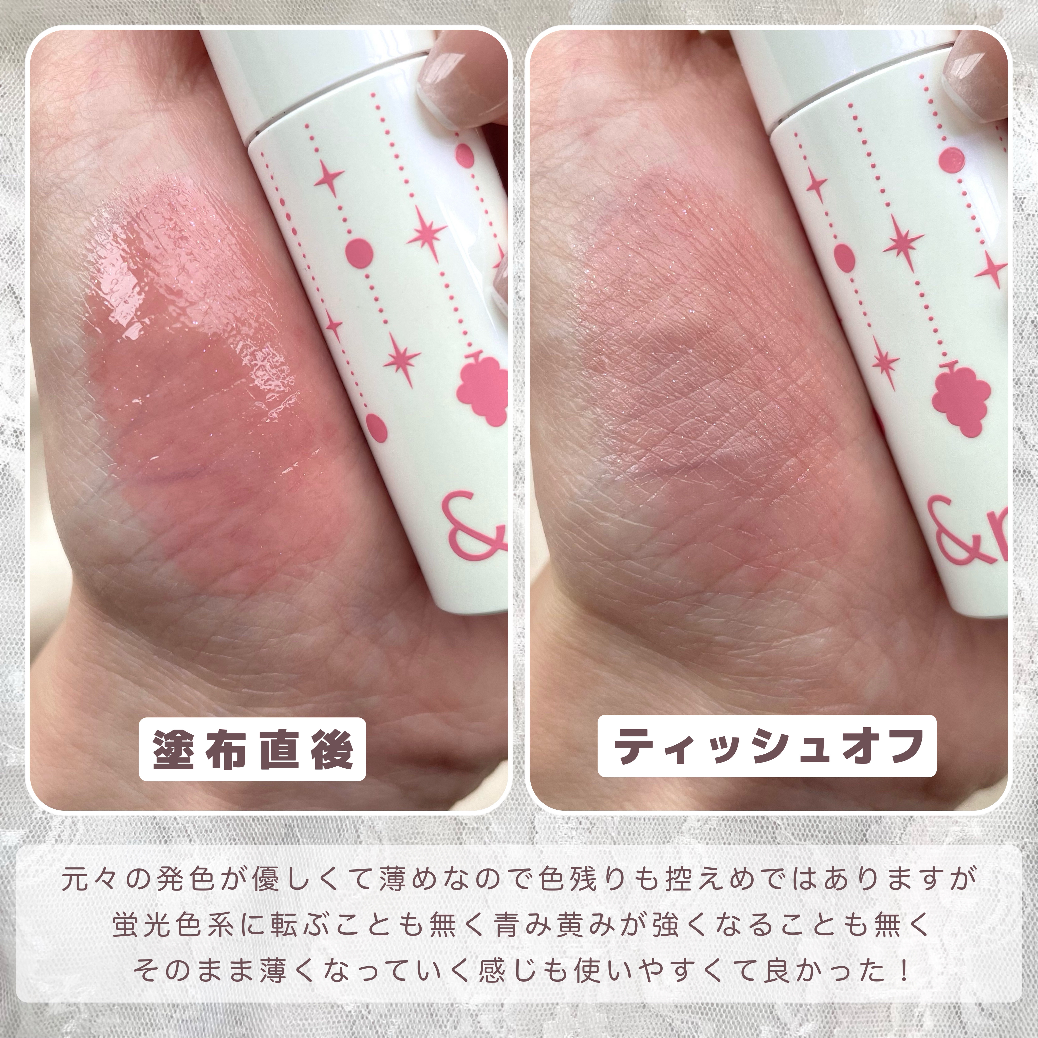 | リップティントランキング第3位 | 重ねて塗っても、ちゅるんと透け感が残って明るめカラーがとっても映える…💕色残りも◎ | 詳細を見る | ||