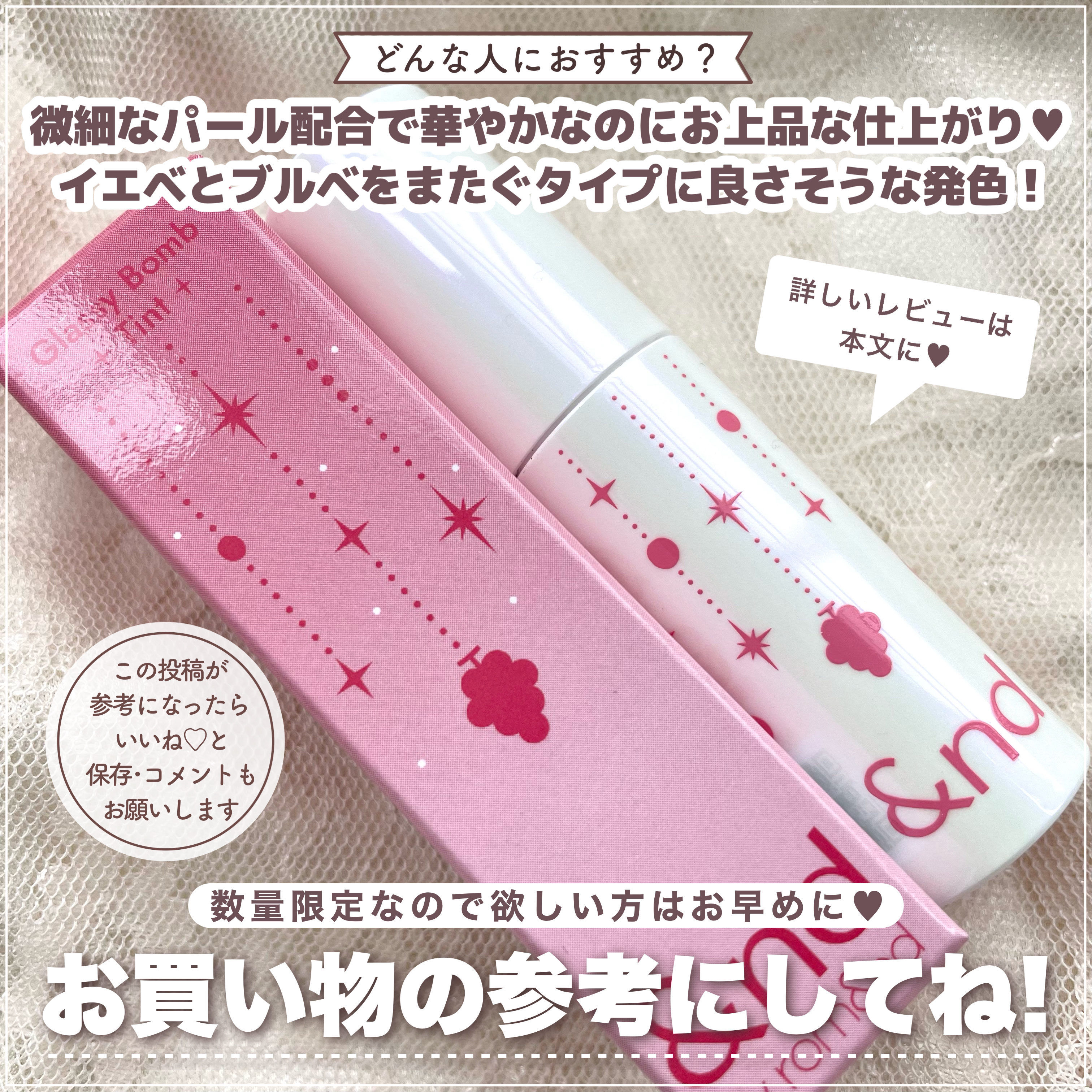 グラッシーボムティントからラメがきらめくホリデーエディションが数量限定で登場。気品漂うシャルドネの香り付きで、&nd by rom&nd初の香り付きティント。 色持ちもいいのでオススメ💜 1ヶ月経つけどまだ店頭にあったので気になる方はLAWSONに急いで🏃🏼♀️💨
