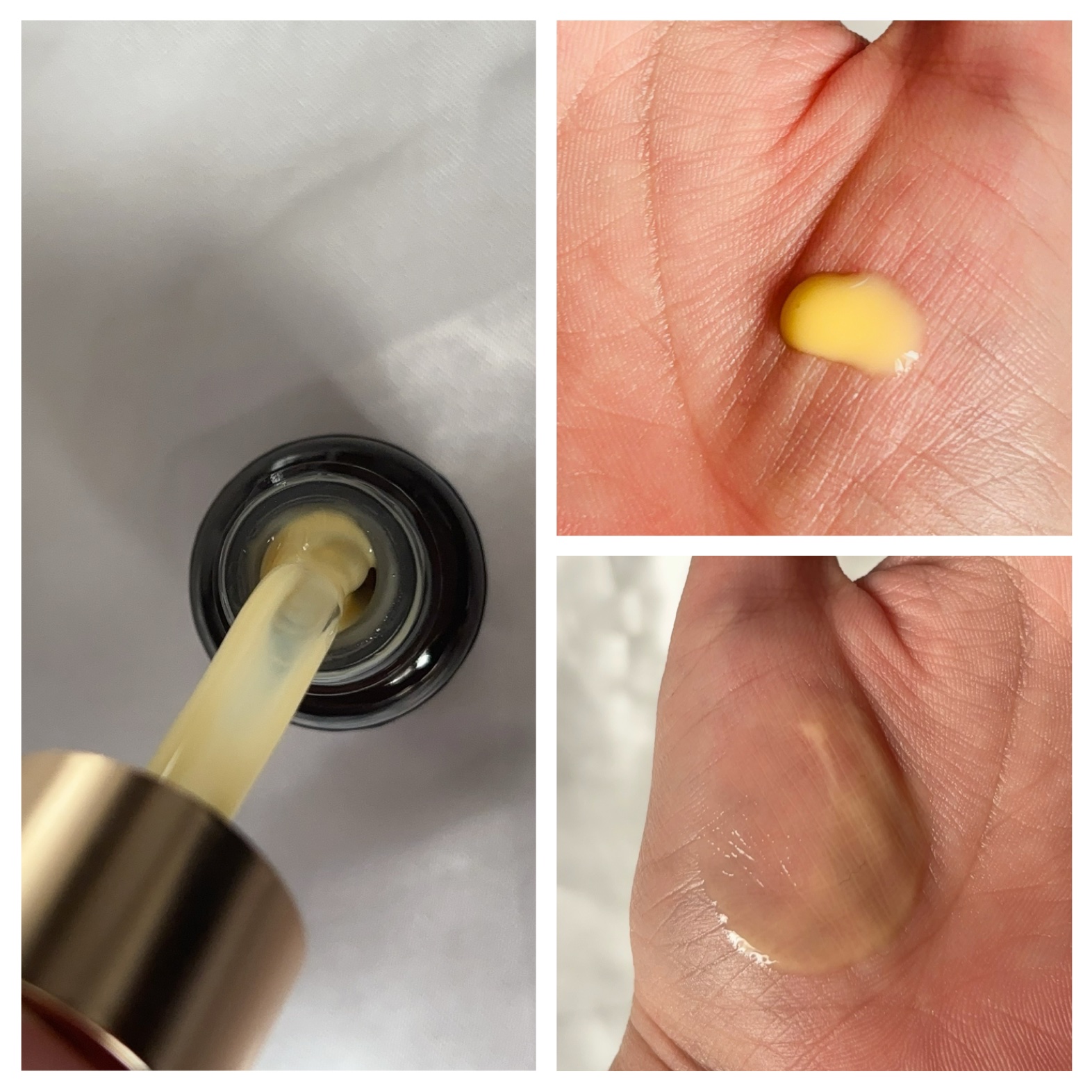 韓国🇰🇷ダーマコスメブランドの[medicube(メディキューブ)]のシミ消しケア。累計100万個販売突破の人気のアイテム! 7日間で肌がトーンアップすることが臨床試験で確認され、美白としわ改善もケアできる美容液✨ とにかく濃い! トロッと濃厚なのがわかります 高濃度ビタミンの証、独特の香りがします
