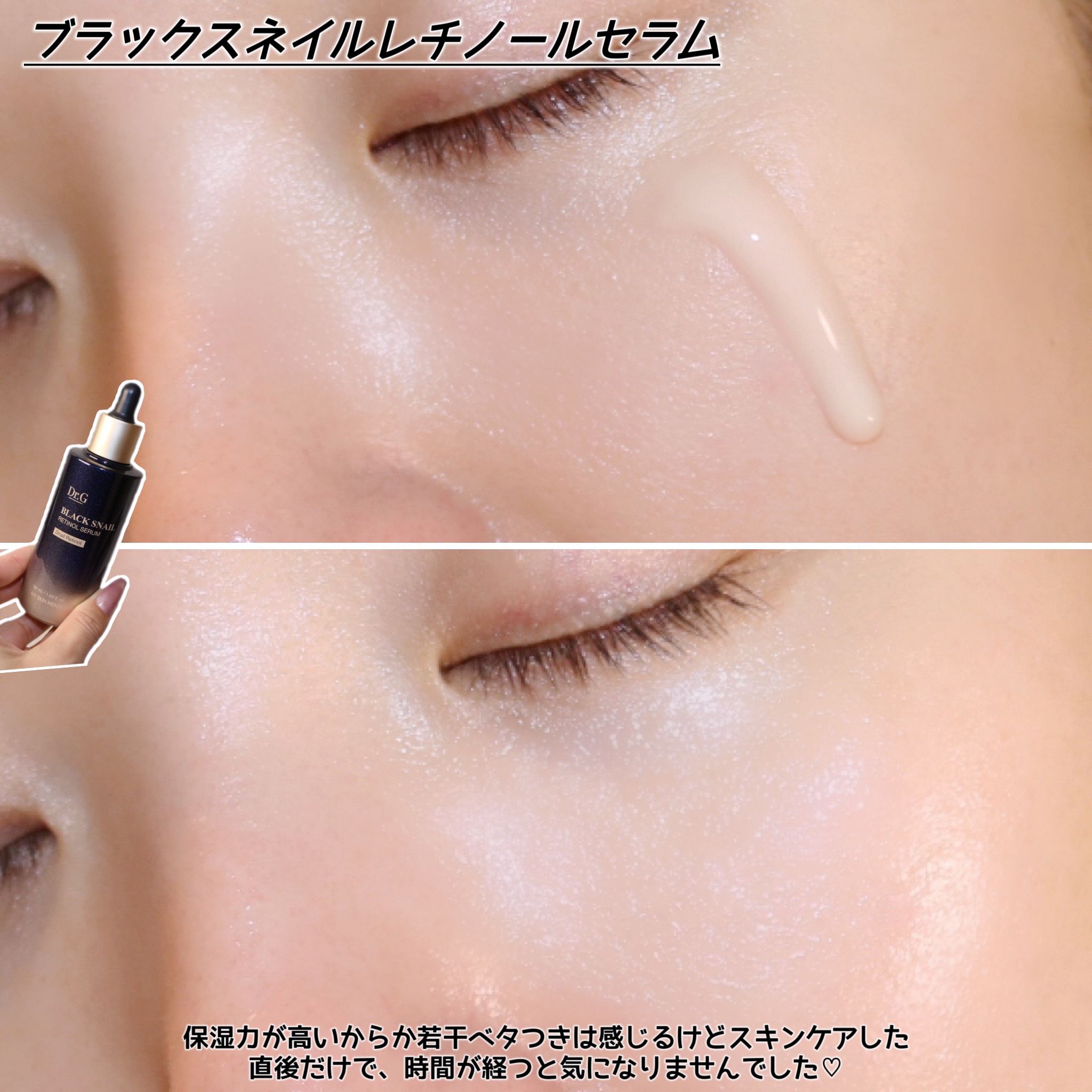 - ブラックスネイル*とレチノール*を配合した、若々しい肌印象に導く美容液です。 Dr.Gのレチノールは独自の成分である、ブラックスネイルレチノール*を使っています! 肌に高い保湿感を与え、肌のキメを整え、弾力やハリのケアを助けるだけでなく、肌の乾燥くすみをケアし、明るい印象のぷるんっとハリのある肌に導きます。 *整肌成分