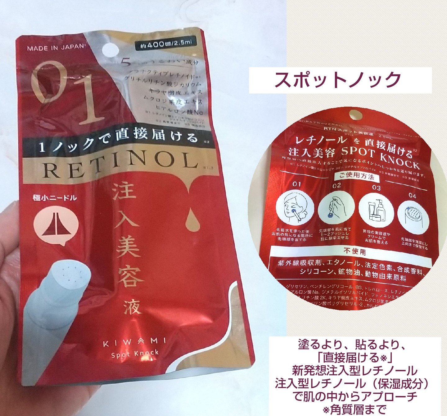 - ★注入型マイクロニードル美容液で角質層に直接注入 気になる目元/口元にノック式ペンタイプ注入器で角質層に直接注入することが出来ます。針は太さ0.1mmの極細針を採用しました。 ★次世代型*1レチノール レチノールとは、年齢肌をケアする整肌成分として今、注目されているビタミンAの1種です。 ・次世代型*1ビタミンA 「グラナクティブ レチノイド」を採用 グラナクティブレチノイドは米国Grant Industries社が開発したレチノイド。 刺激性*2、安定性を追求した次世代型ビタミンAです。グラナクティブレチノイドは直接型レチノイドなので、肌に優しい使い心地です。 繊細な目の下や目尻、首元にも使用することができます。 *1自社比 *2全ての人に刺激が起こらないという訳ではありません