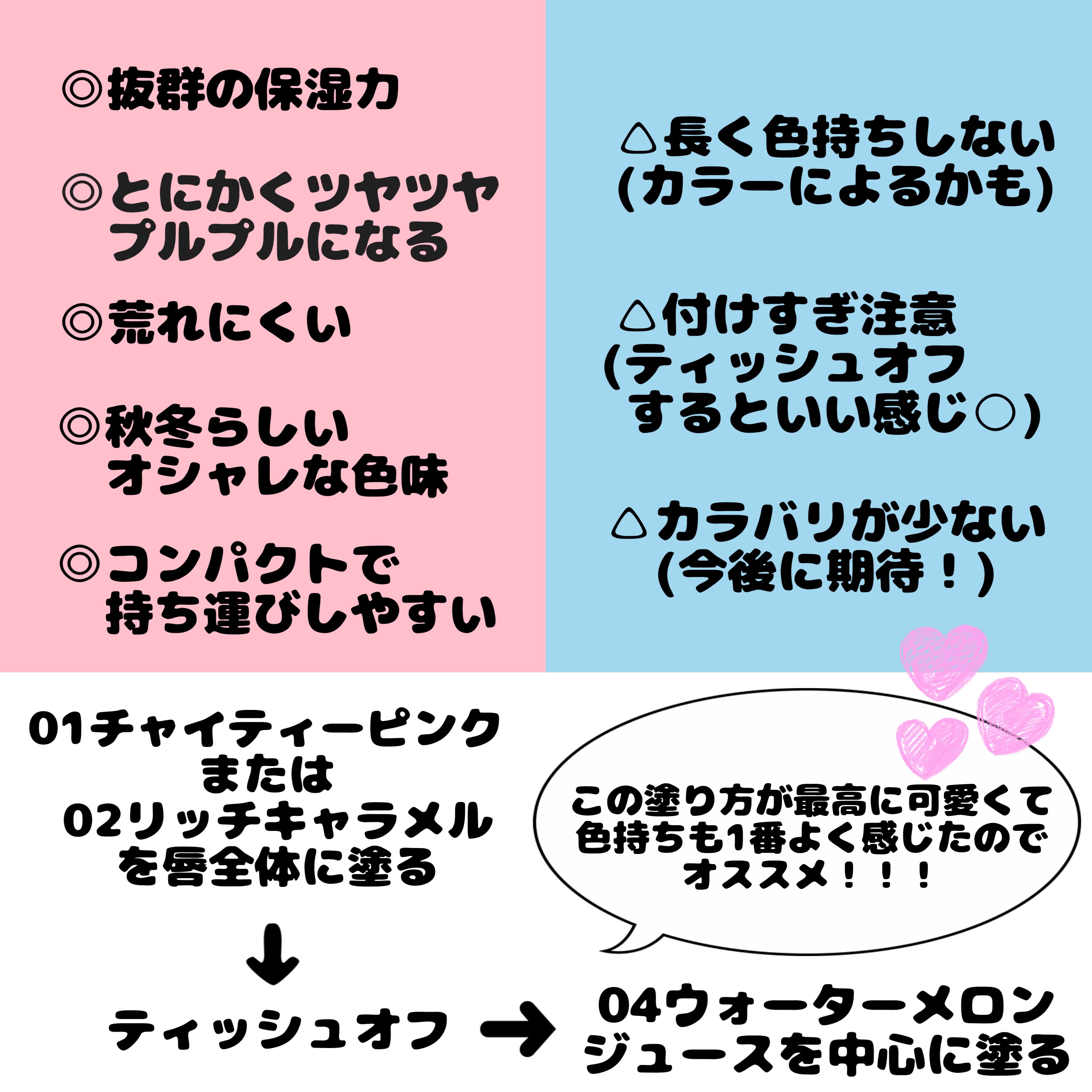 | 口紅・グロス・リップライナーランキング第11位 | すっごいみずみずしい🤩アプリケーターの角度も凄く塗りやすい🥰 | 詳細を見る | |