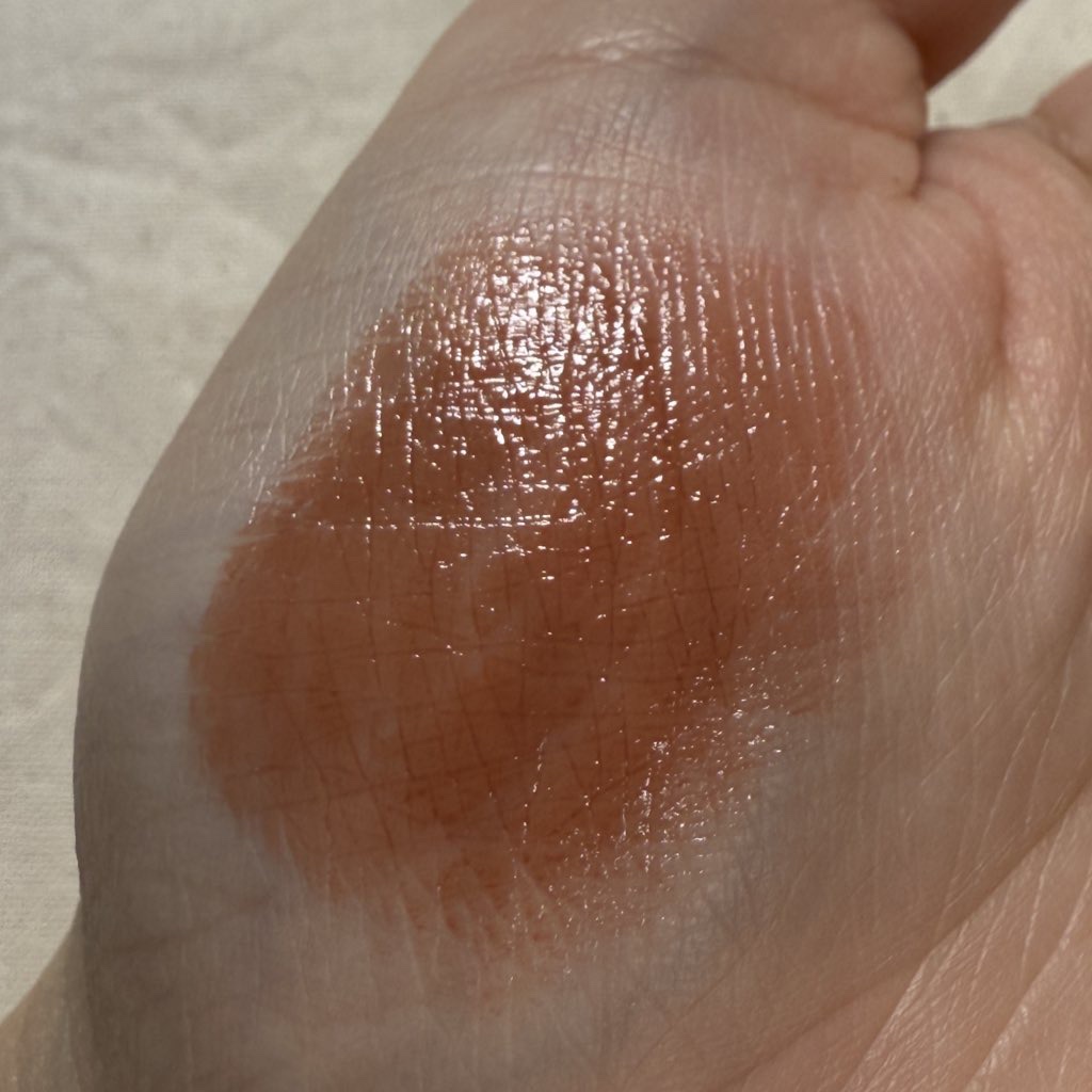 とろけるような塗り心地で縦じわも気にならないし、シアーな発色で肌なじみがよくて️👍⭕️ いただいたカラーが完全にわたし好みのカラーで最高でした😭🙏❤️ 保湿感は高い!