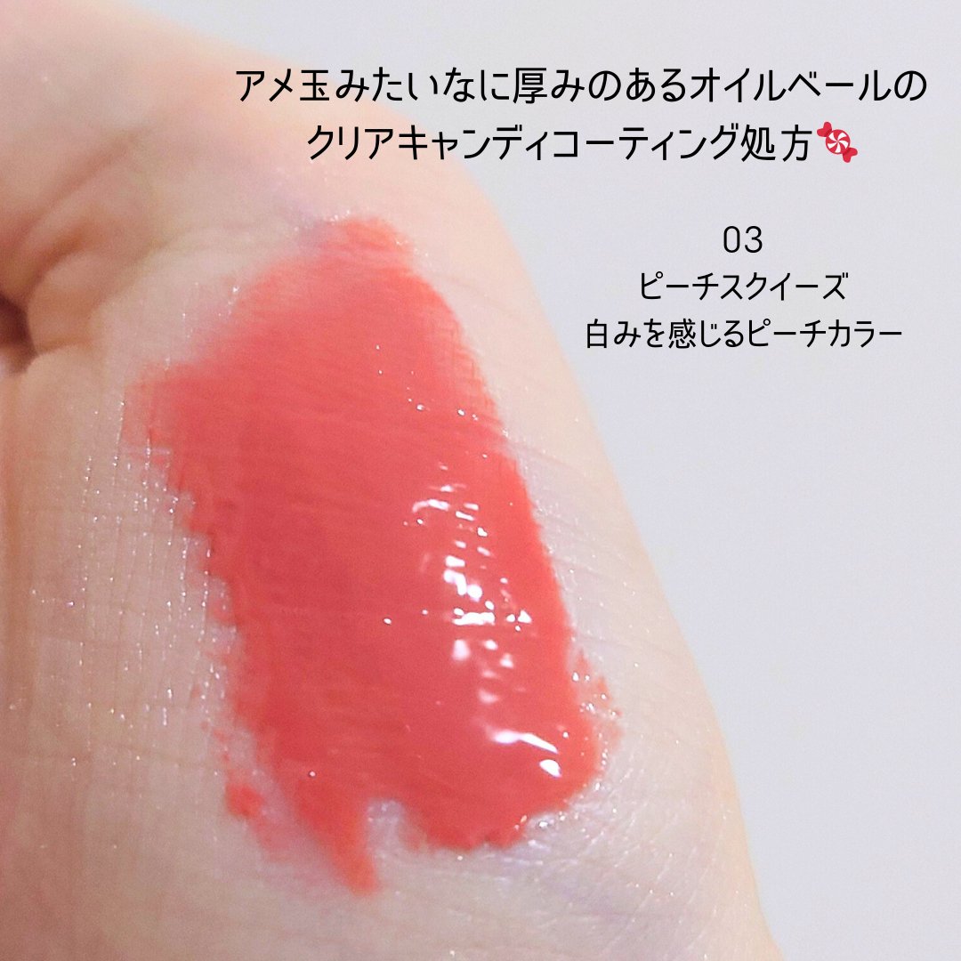 - ●クリアキャンディコーディング処方 あめ玉のようにクリアで厚みのあるオイルベールで、ジューシーな唇に。 ●つけたてカラーが長持ち 高粘度のオイルが密着性を高め、時間が経ってもカラーキープ。 ●3種のうるおう美容液成分in オリーブ果実油、アルガニアスピノサ核油、ウンシュウミカン果皮エキス(すべて保湿成分) 2024年10月23日(水)ポップアップストアにて先々行販売 2024年10月30日(水)アットコスメトーキョー・アットコスメオーサカにて先行販売 2024年11月1日(金)全国発売