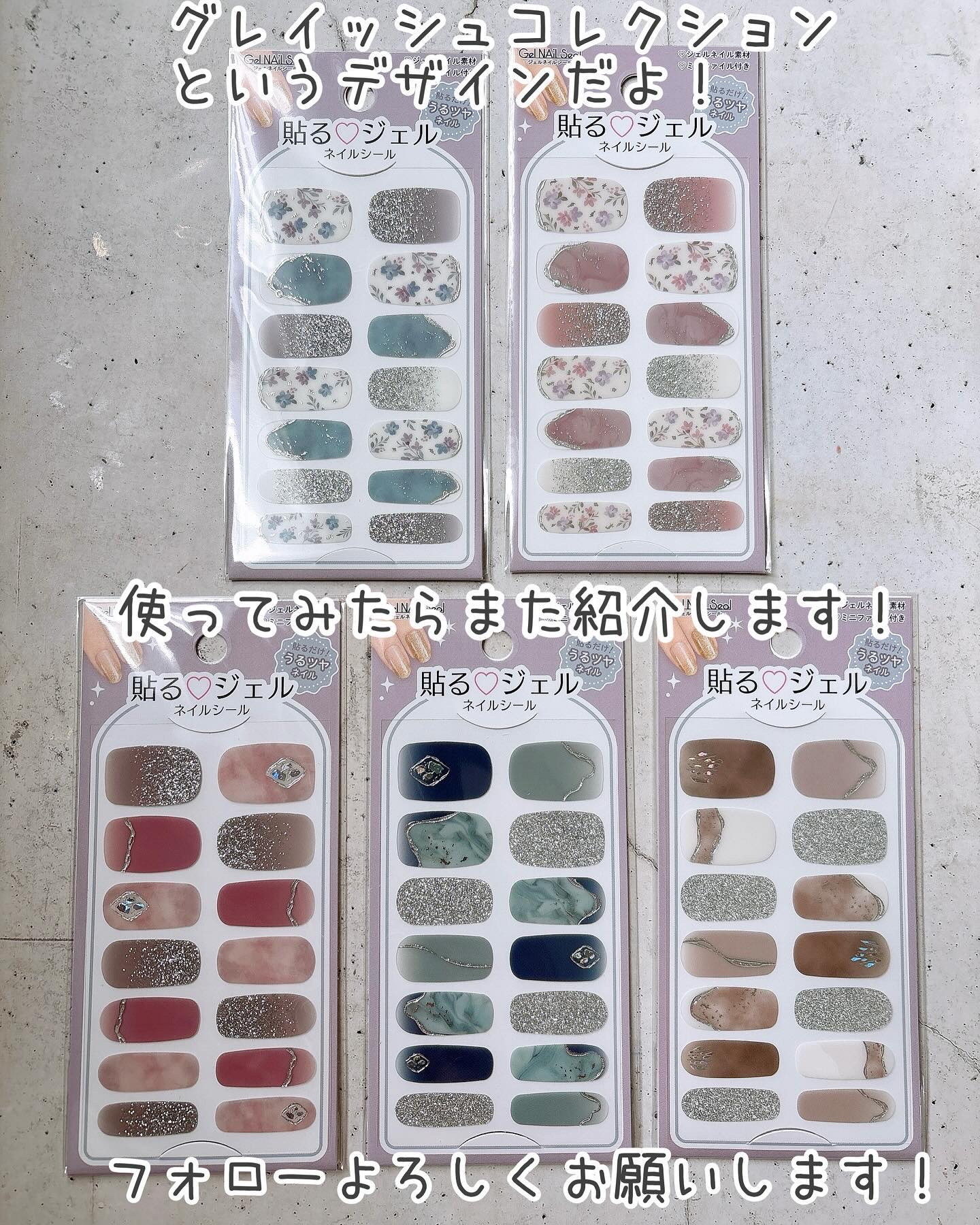 セリアのジェルネイルシール!110円でこのクオリティ本当にありがたいですよね🥺コーティングはしないとシール感めっちゃあるけど😂上手くいけば3週間ぐらいもってくれる!リペアするには枚数が少ないから長持ちしない体で使った方がいいと思いますが💦#n...
