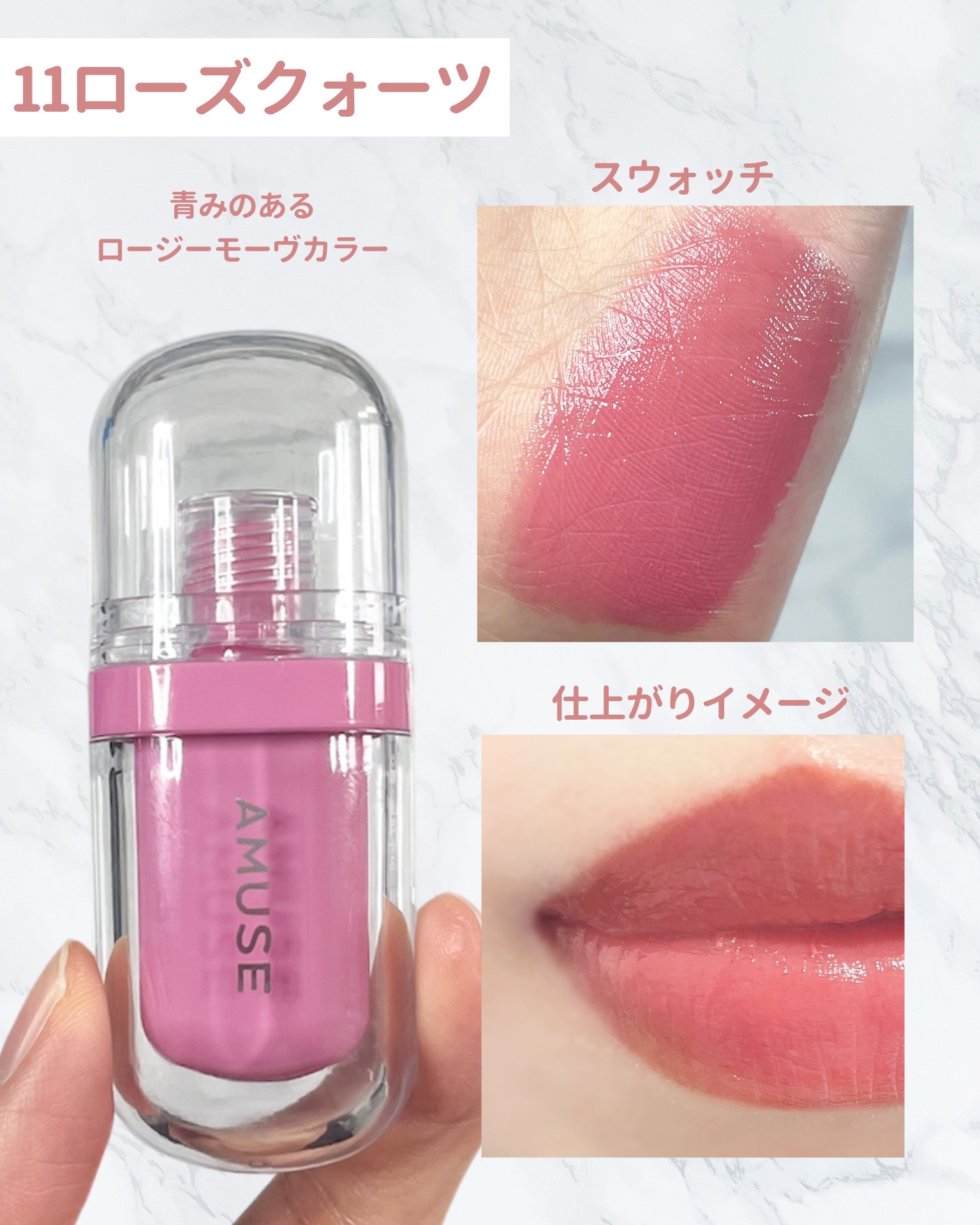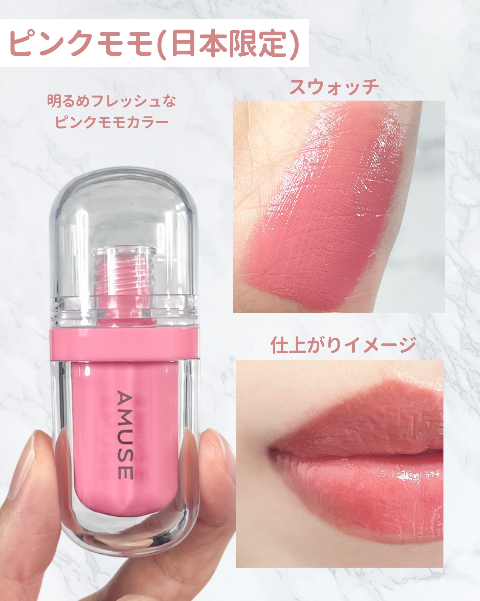 - 濃密なぷにゅっとジェリーが もっちり密着される 長時間持続のジェルフィットティント ☑ぷにゅっとジェリーがもっちり密着される長時間持続&新概念ジェルフィットテクスチャー* ☑8Shadesの透き通るぷにゅっとジェリー発色 ☑3重ツヤシステムで満たせれたぷにゅっとしたジェリーツヤ ☑ジェリーツヤ膜で保湿感ロック ☑手軽いサイズのNEW透明ティント&ぷにゅぷにゅジェリーデザイン ☑ヴィーガン処方 *)AMUSE内において