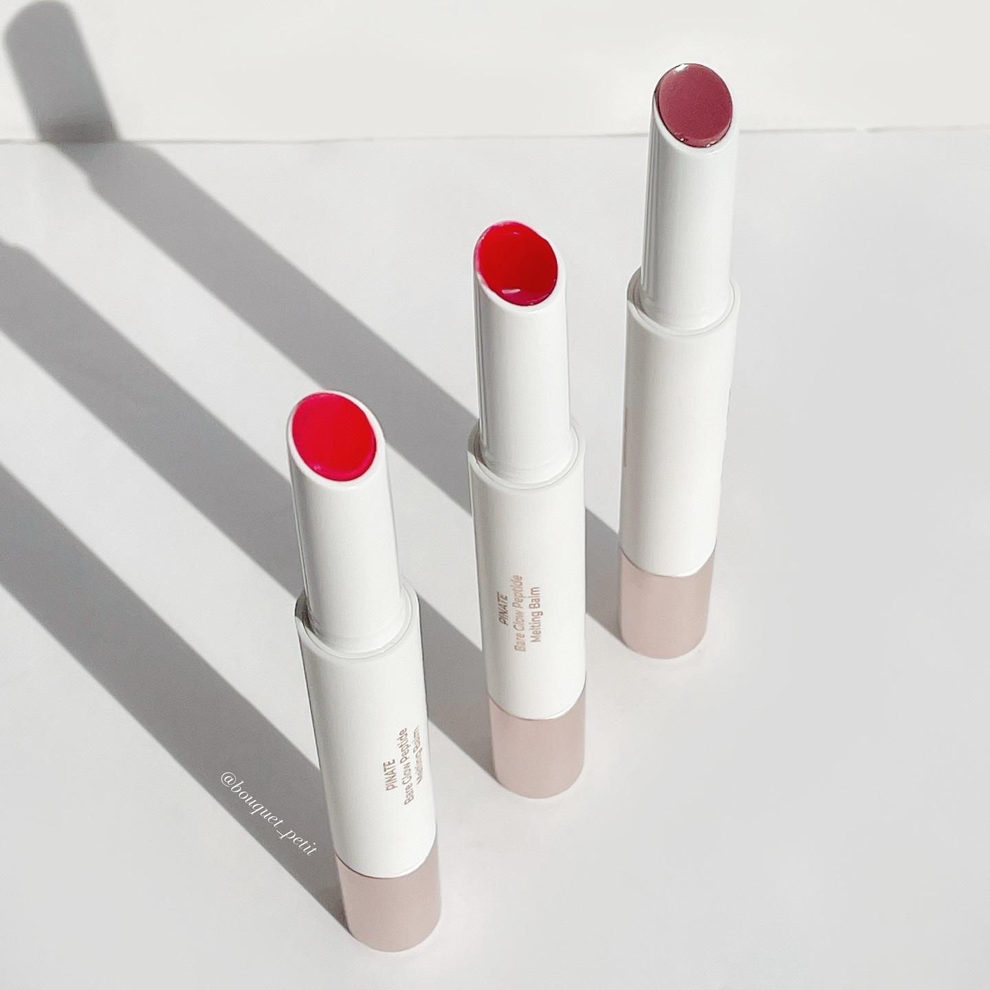 バレリーナ・ラナンキュラスがピンク系、 サーモングロー・サーモンピンクがオレンジまたはコーラル系。 サーモングローはTHE夏カラーのコーラルオレンジ! くすみがなく元気でクリアな印象に。 オールザットヌードは、ハイライターとして。 鼻筋にスッと入れるのが好きです。
