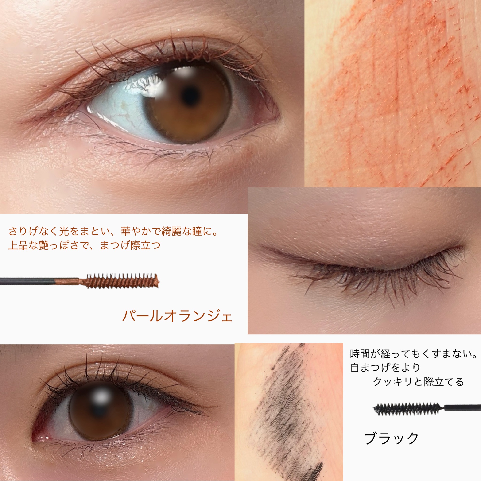 塗るつけまつげ 自まつげ際立てタイプ✨ コンパクトなブラシが細かい毛もキャッチして塗りやすい🙆♀️◎ 定番のブラックはダマにならずにクッキリした印象に♡♡ ホリデーにぴったりなパールオランジェは限定色🎄🍊 派手すぎないから普段にも使いやすい☺️
