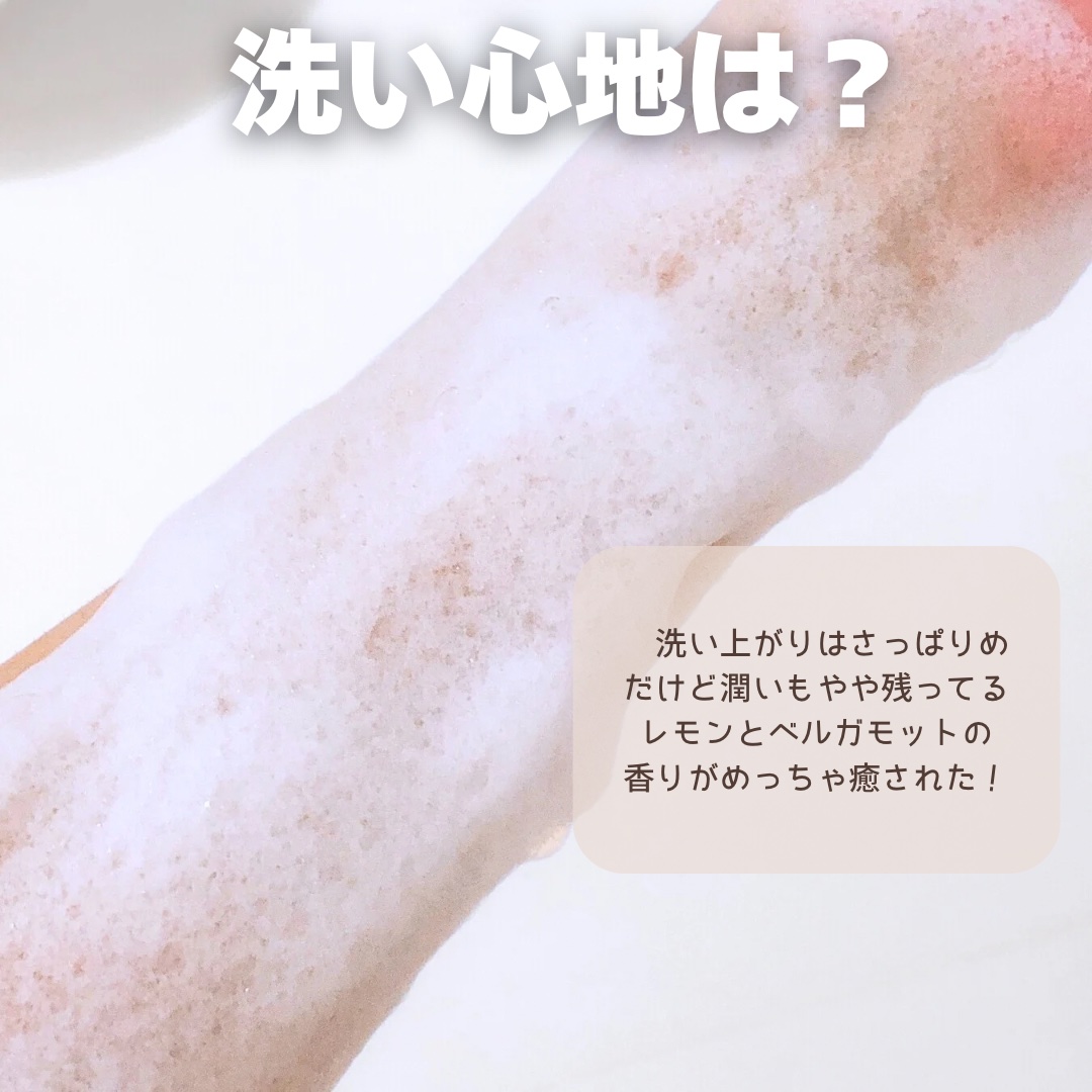 - 石鹸をベースに、天然由来の洗浄成分と保湿成分のバランスよく配合したボディソープ。 泡立ちと泡切れが良く、スッキリとした洗い心地と適度にうるおいを感じる洗い上がりです。 レモン&ベルガモットの香り。