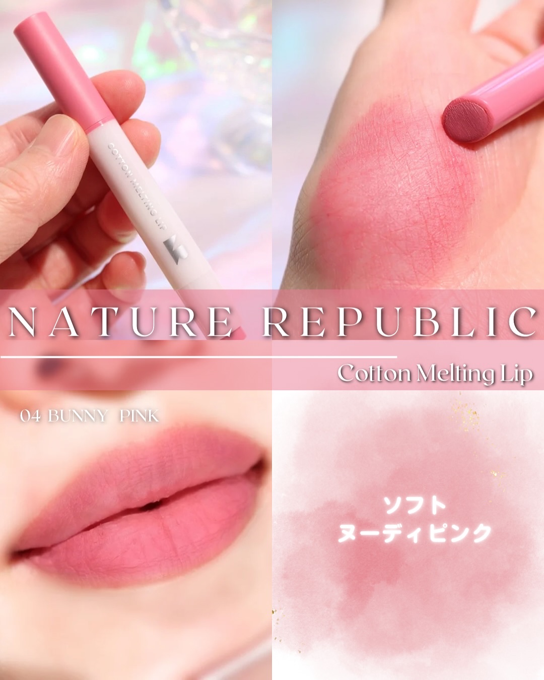 雲のようにふわふわ軽い☁️ネイリパ新作リップ🤍大人気商品『ハニーメルティンリップ』から雲のようにふわふわ柔らかいクリーミーマットタイプが誕生🆕✧ネイチャーリパブリックコットンメルティングリップ軽いつけ心地でなめらかに塗れるけどふわふわとした見...