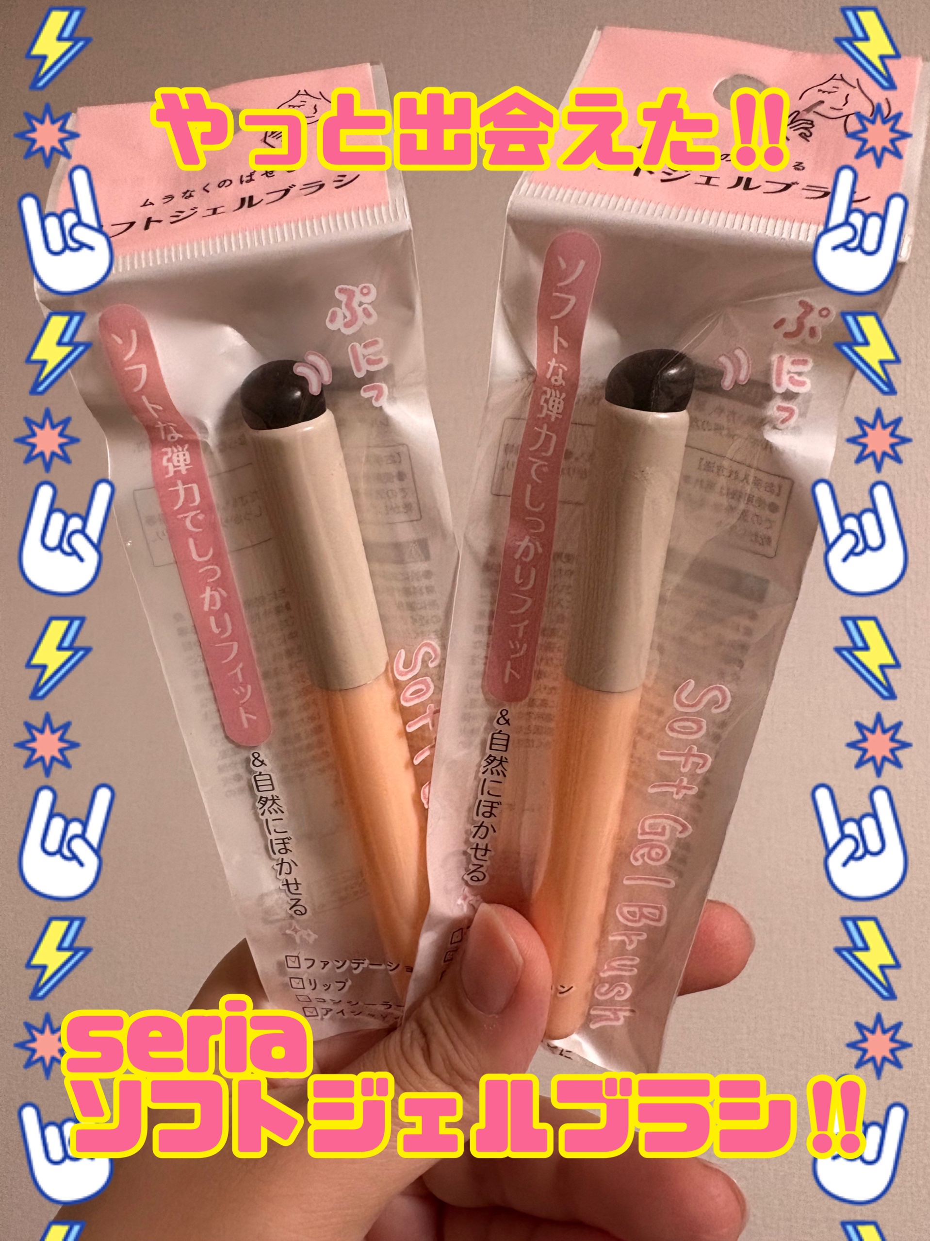 セリア ソフトジェルブラシシリコンプニプニブラシ。やっぱり便利そうと思って買いました。リップ&チーク使う時に便利ですね。取り過ぎないところが良い。特にリップ塗る時によく使ってます。斜めになっていて、取りやすいし塗りやすいです。ティッシュで拭く...