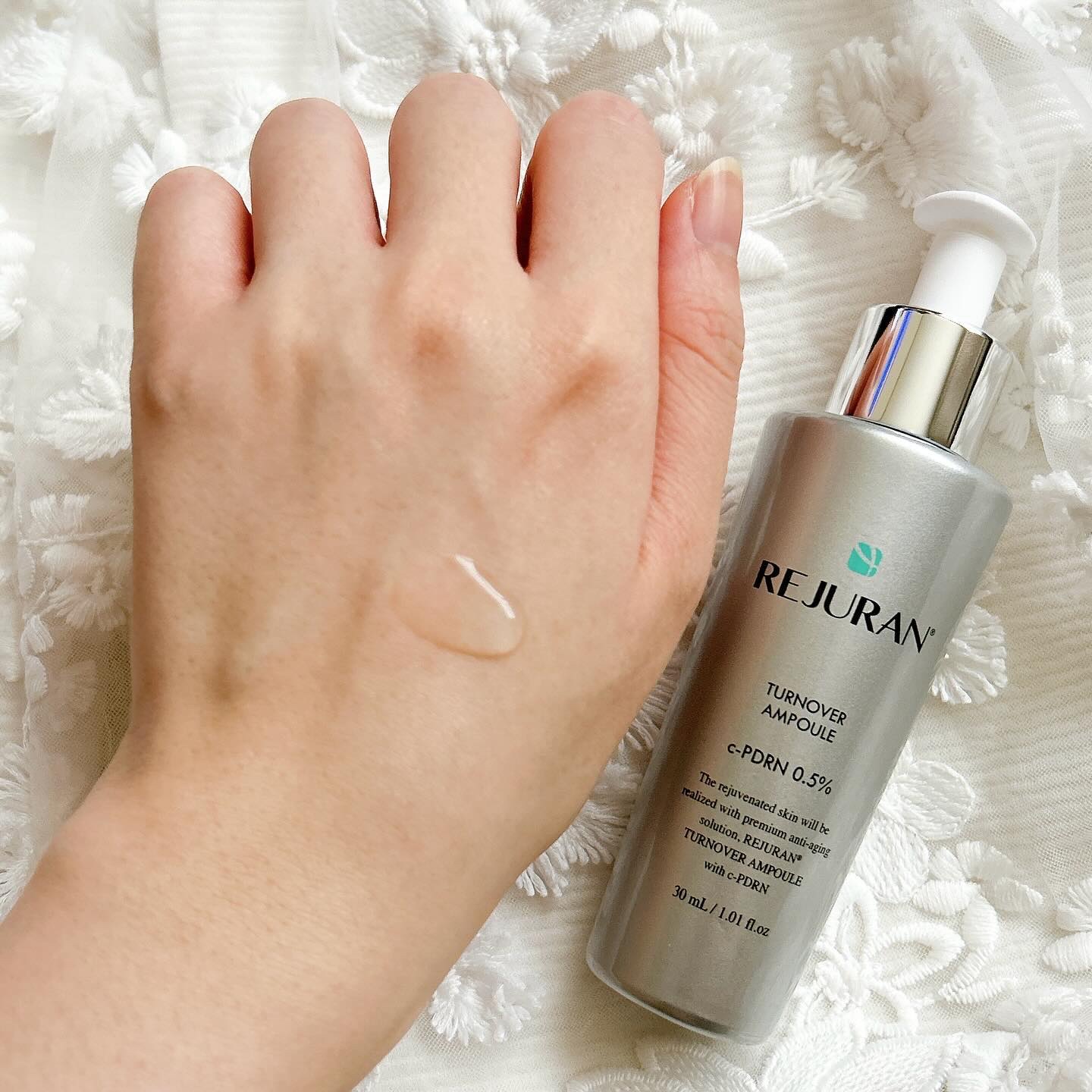 肌の28日サイクルに着目💡 健康に保つターンオーバーアンプルは、リジュラン研究の集大成である独自技術DOTとc-PDRNが含まれていて、肌本来の健康を守ってくれるの💓✨ とろみがある美容液で、伸びも良く、ベタつかないテクスチャー👌