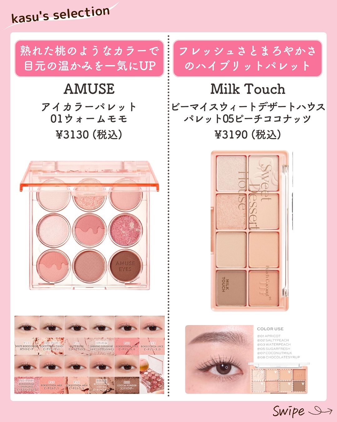 【📌保存版】イエベ春おすすめ韓国ピーチコーラルパレット図鑑🍑公式画像と実物の色味に差がある場合があるので、実物の画像も撮影しました!・WAKEMAKEソフトブラーリングアイパレット07ソーダコーラルブラーリング・WAKEMAKEソフトブ...