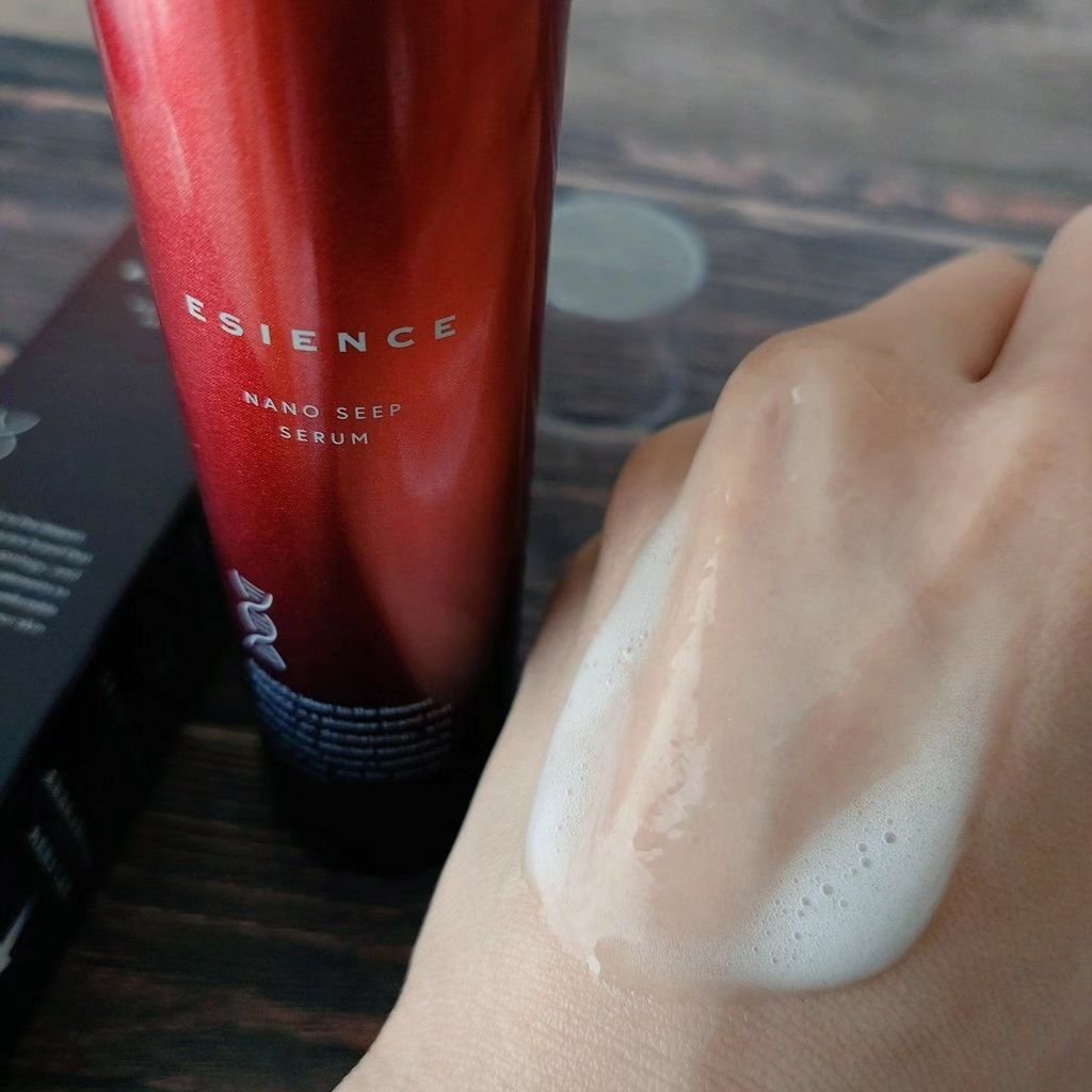 肌の「浸透」に着目したスキンケアアイテムで、ナノ化卵殻膜×浸透型ナイアシンアミドを高濃度微粒炭酸でより浸透特化した導入美容液なのだとか。 美肌に欠かせないアミノ酸シスチンが多く配合されているフォース卵殻膜エキスを90%配合し、また、毛穴より小さい炭酸泡と美容成分をナノ化しているため、肌の奥まで浸透するそう。 「ジャスミンを中心としたフローラルな香り」は、軽やかさがあります。肌に密着させるように香りを楽しみながら、首元まで丁寧になじませています。