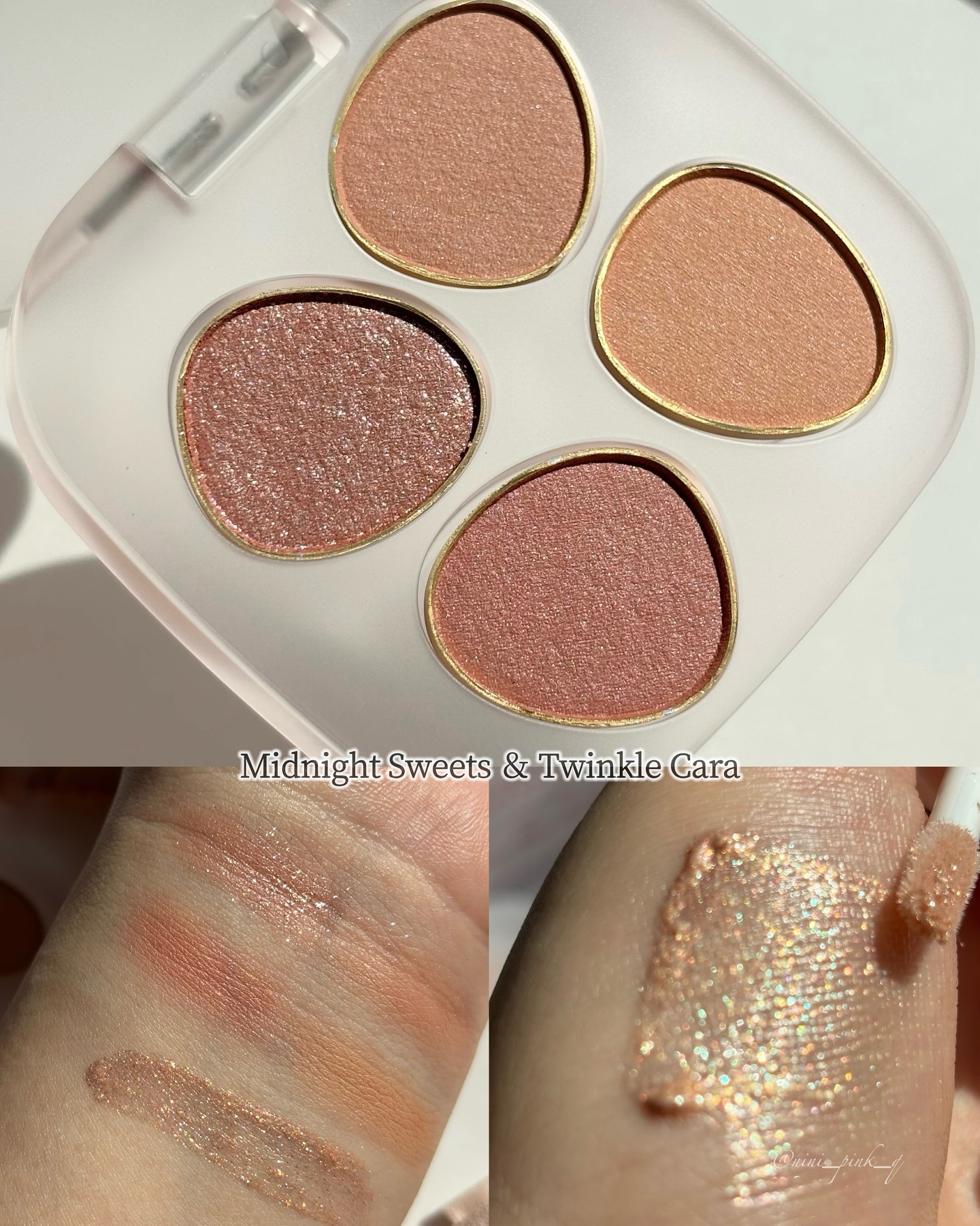 10 in flowはまさに夜桜パレット 深い夜空の月明かりで反射した川に 淡い桜の花びらが浮かんでるような。 儚くてエモい雰囲気。 ピンクのくすみがそこまで強くないから 意外と沈みにくいパレット。