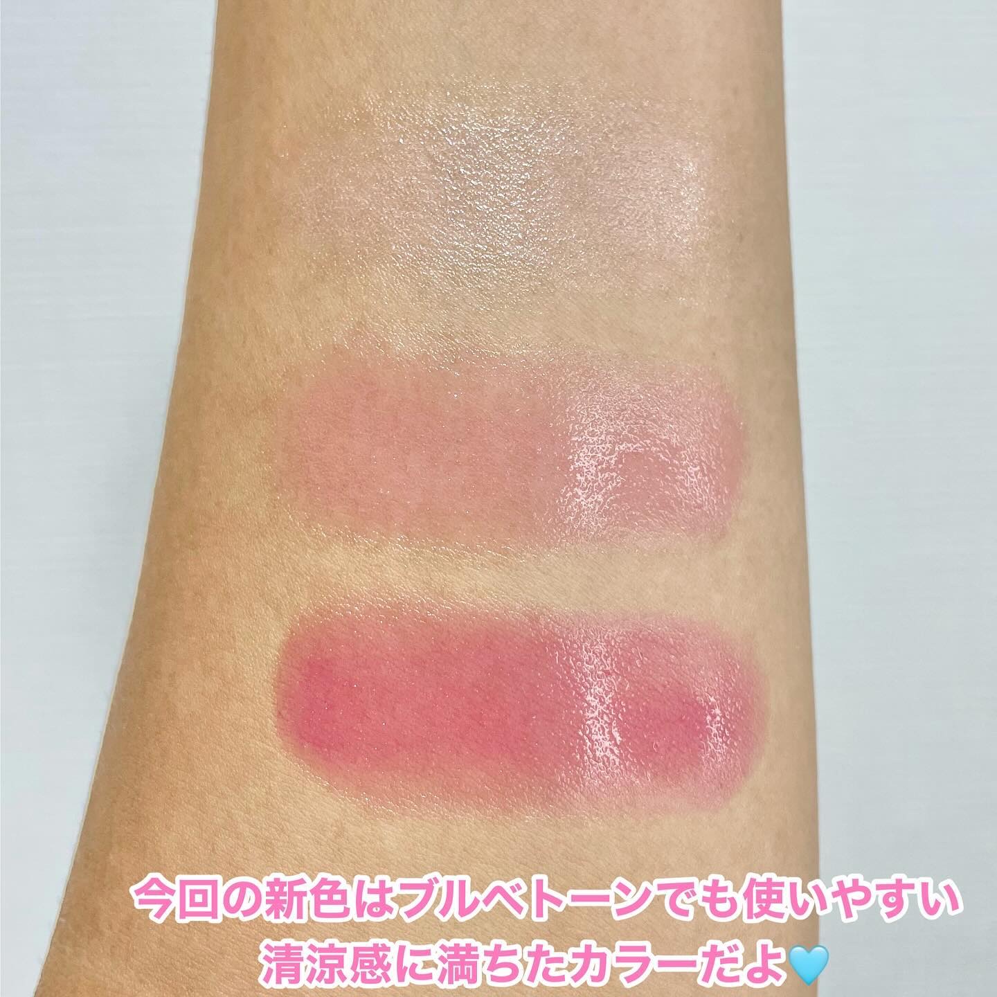 元々あったベージュに加えて、ラベンダー、ミントの2色が新しく出たよ✨ 水分ベースにグリーントーンの鎮静パウダーを加え、色とりどりに赤くなったお肌を補正してくれるミントトーンアップエッセンス💡 私は肌の赤みが強いから、グリーンベース使うと赤みが引いていい感じ✨ みずみずしく密着度の高いテクスチャーで時間が経つほど肌に馴染んで長時間キープしてくれるからすごくいい感じ⭐️ ベージュも自然に美肌に見せてくれるから気に入ってたけど、補正機能のついたミントも使いやすくてヘビロテの予感💗 これ一本あるだけで肌のカラーコントロールができるからすっぴん風メイクもしっかりメイクも🙆♂️