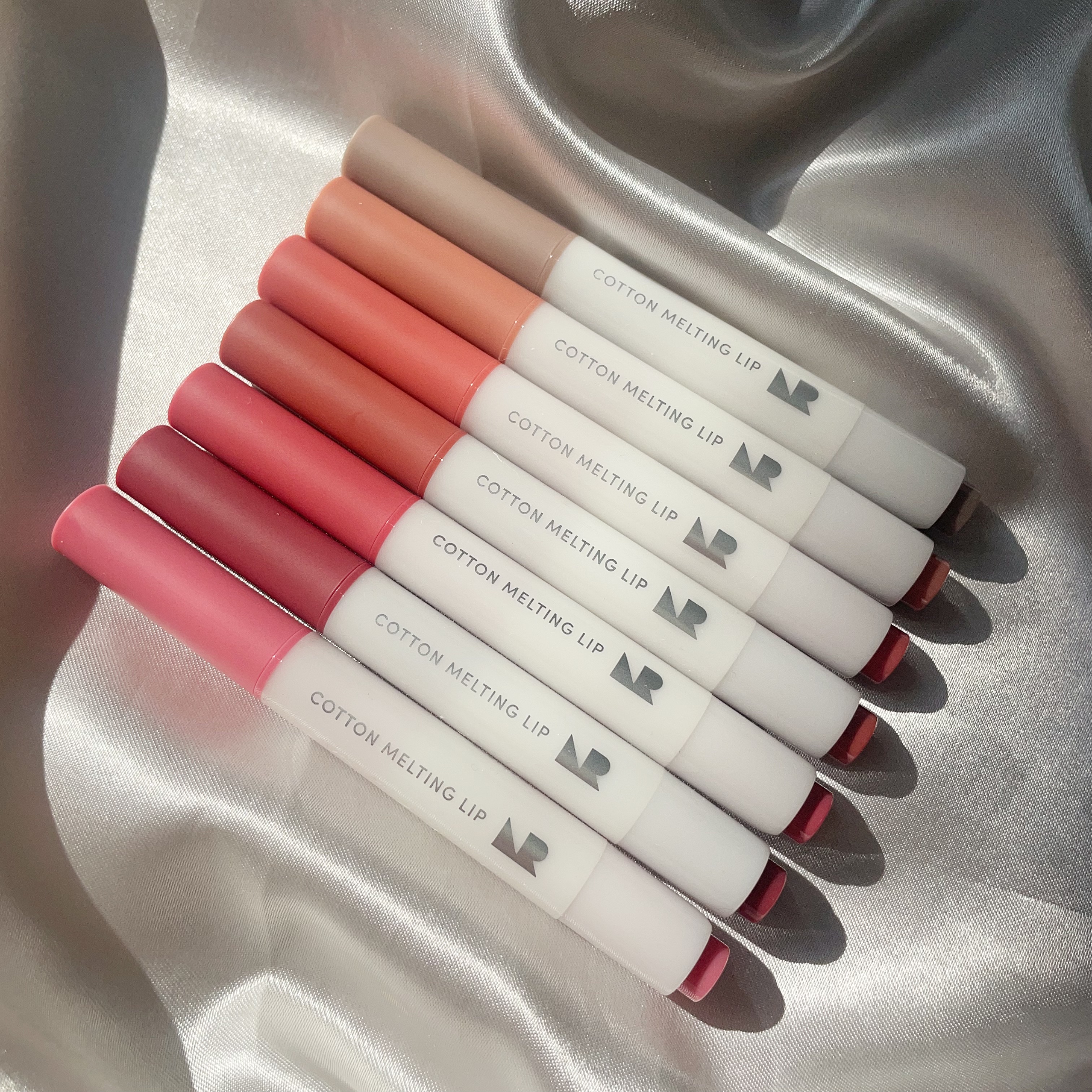 - ふんわりマシュマロ唇が作れちゃう「コットンメルティングリップ」が登場! シアバターと8種のヒアルロン酸配合で、マットリップなのに軽やかにうるおう新概念リップです。 イエベ・ブルべ問わず肌馴染みのいい7色展開で、いずれも落ち着いたミュートカラーが特徴。唇の質感をふんわりとぼかしながらマシュマロのような唇を演出します。 さらにチークやアイシャドウ、シェーディングにも使えるマルチユース。 1本ポーチに忍ばせればメイク直しも簡単です。