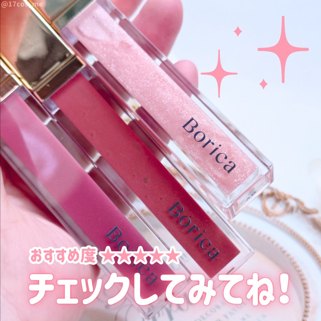 10種類の美容成分が配合された美容液リッププランパー🥰 透け感のある発色でちゅるっちゅる。手持ちのリップの上からも使えるよ! Boricaのプランパーは使いやすくてファンも多いよね💕 程よいプランプ効果で使い心地最高! 今回使った新色はパーソナルカラーを問わずに一本で映えるニュートラルカラーだよ🥰