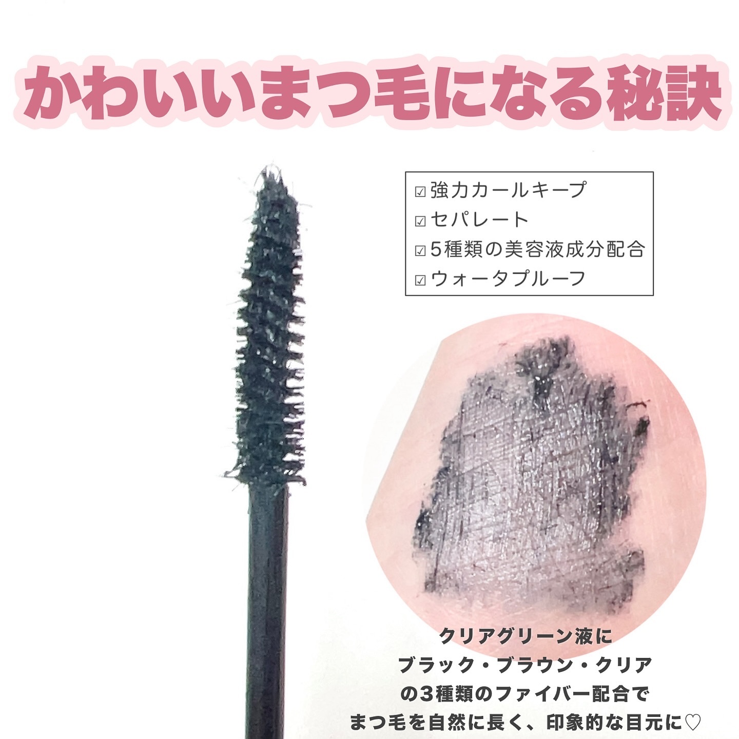- "さっと仕込んで 私らしさ引き出す ピメルではじける あなただけの魅力"。 繊細ロング×夜までカール、まるで自まつげが伸びたみたい!"うそつきマスカラ"。 さっとひと塗りで、ナチュラルだけど目ヂカラUPを叶えるまつげになじむ「透け感ブラック」。 肌馴染みが良くさらに軽やかな「透け感ブラウン」。 大人可愛い限定色「透け感モーヴピンク」。 印象的でおしゃれな限定色「透け感ナイトグリーン」。 重ねてもダマにならないセパレート仕上げで強力カールキープ。 綺麗なまつげが続く、ウォータープルーフ。