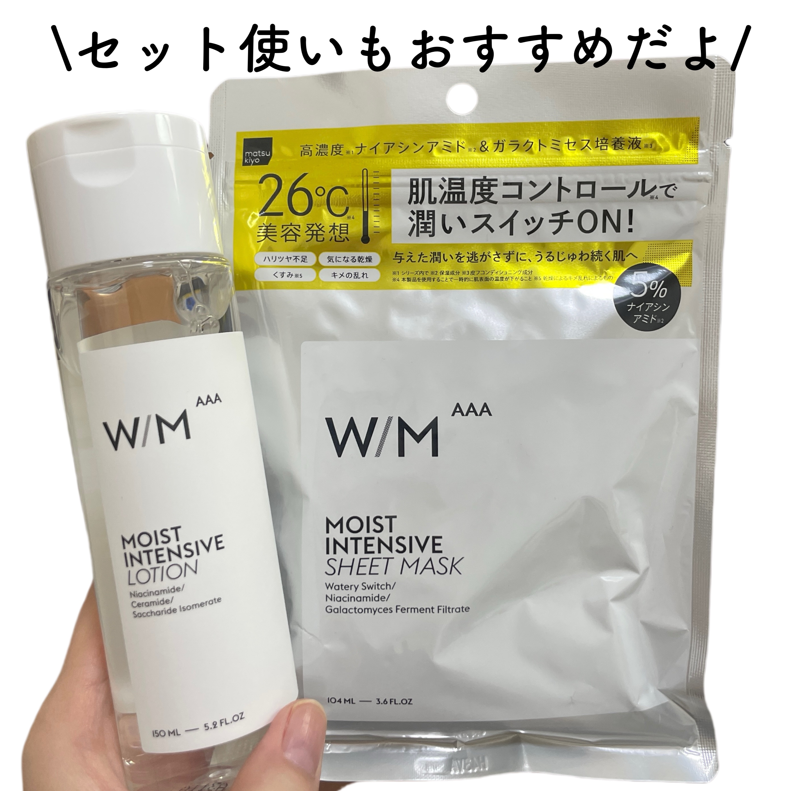 皆さんこんにちは、くしゃみです🦄マツキヨ(プライベート)ブランドから、高品質で高コスパのシートマスクが登場🧚♂️✨ ⚪︎matsukiyoW/MAAA モイストインテンシブシートマスク26°C美容発想*1のナイアシンアミド*2を高濃度*3で...