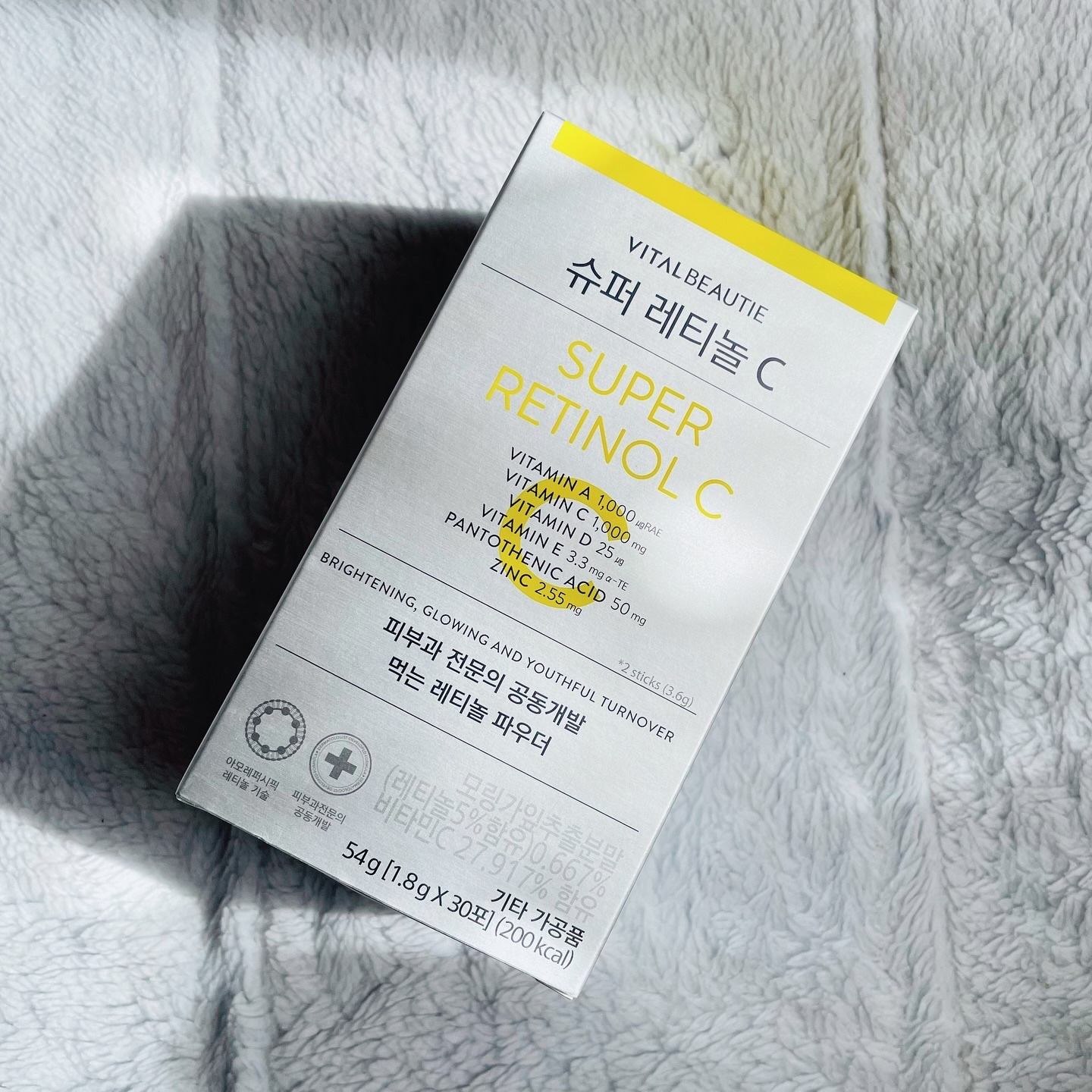 - 食べるタイプのレチノール 1) 専門家のフォーミュラ Flex! - 皮膚科専門医とアモーレパシフィックが共同開発 29年間蓄積したレチノール技術で完成! 食べるレチノールプロテクション技術を適用 (ビタミンA、1000ugRAE配合*) 2) 明るく輝く! - 豊富に含むビタミンC1,000mg含有* - パントテン酸1日栄養成分基準配合* - ビタミンE、ビタミンD、亜鉛 副成分 L-システインとヘスペリジンを配合 3) さわやかなシトラスの味 「ヴィーガンレチノール」 - ヴィーガン認証を取得した毎日摂取できる美味しいレチノール *上記の栄養成分の数値は、2包摂を基準に作成された含量です *お召し上がり方! 1回1~2包を 直接摂取してください