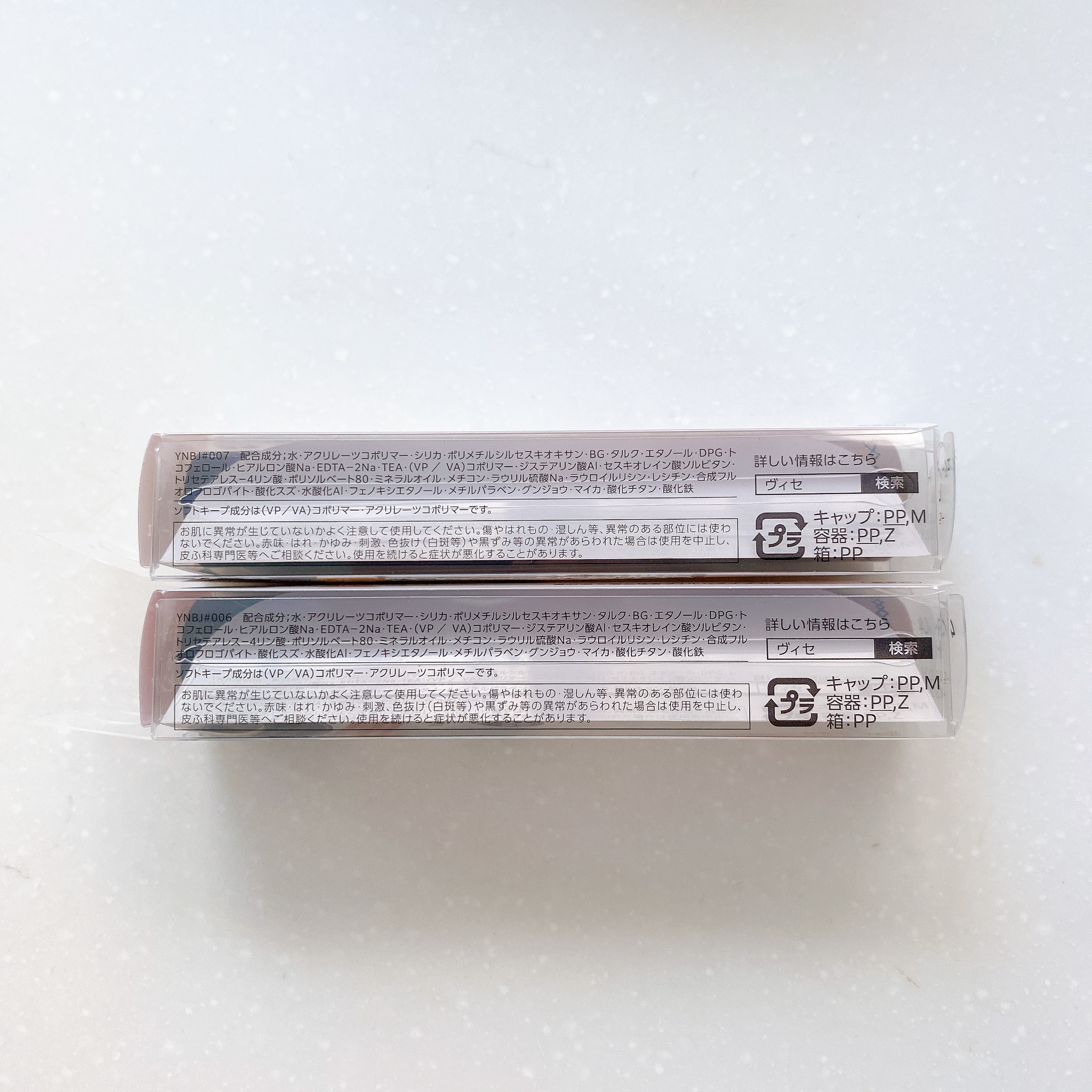- <BR-1 ベージュアッシュ> 水、シリカ、ポリメチルシルセスキオキサン、アクリレーツコポリマー、タルク、BG、エタノール、DPG、トコフェロール、ヒアルロン酸Na、EDTA-2Na、TEA、 (ビニルピロリドン/VA) コポリマー、アクリル酸アルキルコポリマー、セスキオレイン酸ソルビタン、トリセテアレス-4リン酸、パーフルオロヘキシルエチルトリエトキシシラン、ポリソルベート80、ミネラルオイル、ラウリル硫酸Na、レシチン、水酸化Al、フェノキシエタノール、メチルパラベン、酸化チタン、酸化鉄 <BR-2 ピンクアッシュ> 水、シリカ、ポリメチルシルセスキオキサン、アクリレーツコポリマー、タルク、BG、エタノール、DPG、トコフェロール、ヒアルロン酸Na、EDTA-2Na、TEA、 (ビニルピロリドン/VA) コポリマー、アクリル酸アルキルコポリマー、セスキオレイン酸ソルビタン、トリセテアレス-4リン酸、パーフルオロヘキシルエチルトリエトキシシラン、ポリソルベート80、ミネラルオイル、ラウリル硫酸Na、レシチン、水酸化Al、フェノキシエタノール、メチルパラベン、酸化チタン、酸化鉄 <BR-3 ライトブラウン> 水、シリカ、ポリメチルシルセスキオキサン、アクリレーツコポリマー、タルク、BG、エタノール、DPG、トコフェロール、ヒアルロン酸Na、EDTA-2Na、TEA、 (ビニルピロリドン/VA) コポリマー、アクリル酸アルキルコポリマー、セスキオレイン酸ソルビタン、トリセテアレス-4リン酸、パーフルオロヘキシルエチルトリエトキシシラン、ポリソルベート80、ミネラルオイル、ラウリル硫酸Na、レシチン、水酸化Al、フェノキシエタノール、メチルパラベン、酸化チタン、酸化鉄 <BR-4 ナチュラルブラウン> 水、シリカ、ポリメチルシルセスキオキサン、アクリレーツコポリマー、BG、タルク、エタノール、DPG、トコフェロール、ヒアルロン酸Na、EDTA-2Na、TEA、 (ビニルピロリドン/VA) コポリマー、アクリル酸アルキルコポリマー、セスキオレイン酸ソルビタン、トリセテアレス-4リン酸、パーフルオロヘキシルエチルトリエトキシシラン、ポリソルベート80、ミネラルオイル、ラウリル硫酸Na、レシチン、水酸化Al、フェノキシエタノール、メチルパラベン、酸化チタン、酸化鉄 <BR-5 ダークブラウン> 水、タルク、シリカ、ポリメチルシルセスキオキサン、アクリレーツコポリマー、BG、エタノール、DPG、トコフェロール、ヒアルロン酸Na、EDTA-2Na、TEA、 (ビニルピロリドン/VA) コポリマー、アクリル酸アルキルコポリマー、セスキオレイン酸ソルビタン、トリセテアレス-4リン酸、パーフルオロヘキシルエチルトリエトキシシラン、ポリソルベート80、ミネラルオイル、ラウリル硫酸Na、レシチン、水酸化Al、フェノキシエタノール、メチルパラベン、酸化チタン、酸化鉄 <BR-6 ホワイトピンク> 水・アクリレーツコポリマー・シリカ・ポリメチルシルセスキオキサン・タルク・BG・エタノール・DPG・トコフェロール・ヒアルロン酸Na・EDTA-2Na・TEA・(VP/VA)コポリマー・ジステアリン酸Al・セスキオレイン酸ソルビタン・トリセテアレス-4リン酸・ポリソルベート80・ミネラルオイル・メチコン・ラウリル硫酸Na・ラウロイルリシン・レシチン・合成フルオロフロゴパイト・酸化スズ・水酸化Al・フェノキシエタノール・メチルパラベン・グンジョウ・マイカ・酸化チタン・酸化鉄 <BR-7 ホワイトベージュ> 水・アクリレーツコポリマー・シリカ・ポリメチルシルセスキオキサン・BG・タルク・エタノール・DPG・トコフェロール・ヒアルロン酸Na・EDTA-2Na・TEA・(VP/VA)コポリマー・ジステアリン酸Al・セスキオレイン酸ソルビタン・トリセテアレス-4リン酸・ポリソルベート80・ミネラルオイル・メチコン・ラウリル硫酸Na・ラウロイルリシン・レシチン・合成フルオロフロゴパイト・酸化スズ・水酸化Al・フェノキシエタノール・メチルパラベン・グンジョウ・マイカ・酸化チタン・酸化鉄