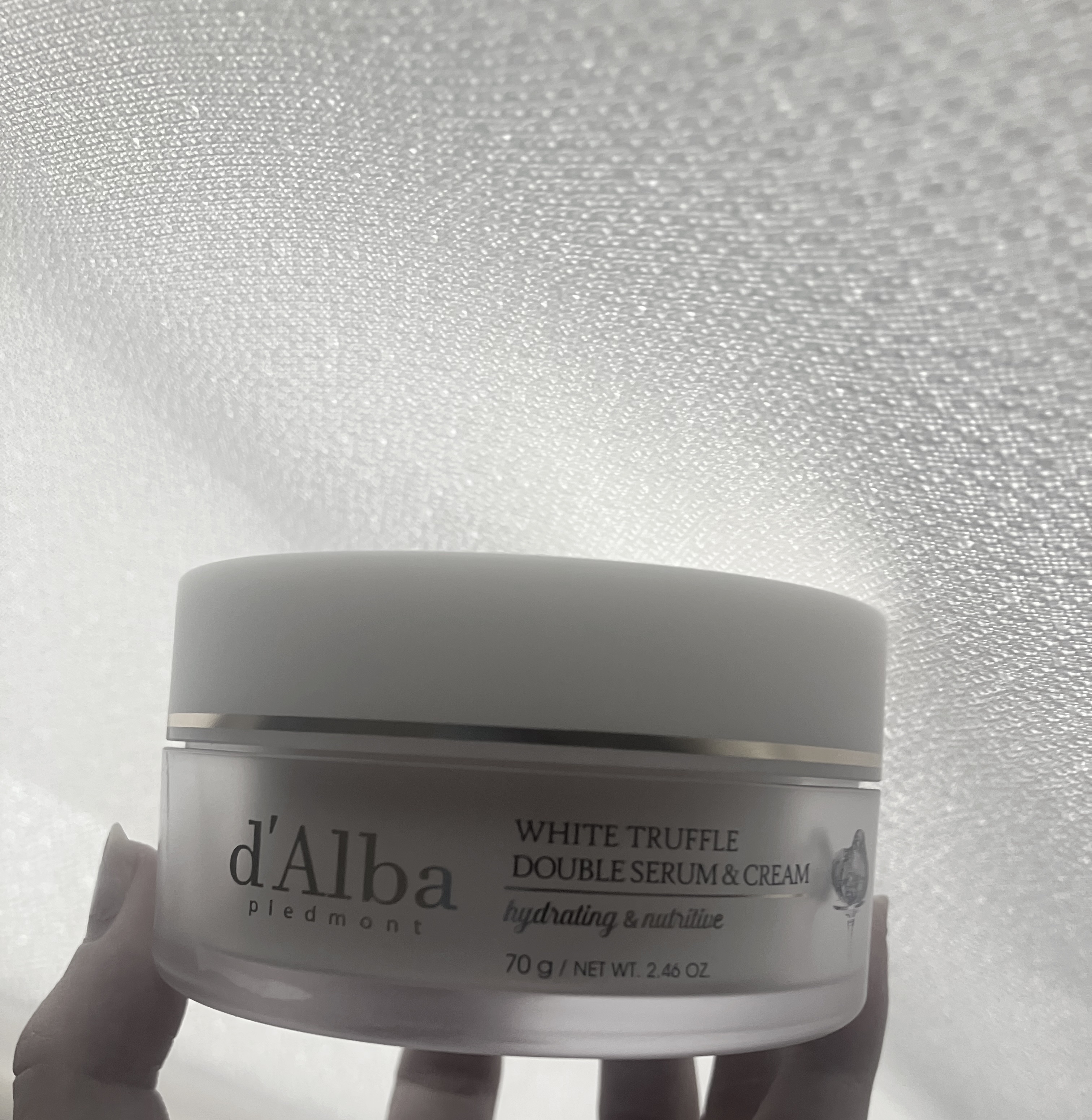 ダルバのダブルセラムアンドクリームが面白いんです💛🤍 黄色いアクアセラムと白っぽいインテンスクリームが半分ずつ入ったクリーム。 肌のコンディションに合わせてクリームの量を調整することで今丁度いい保湿ができるんです♪ ダルバといえばのホワイトトリュフでキメの整った肌に✨