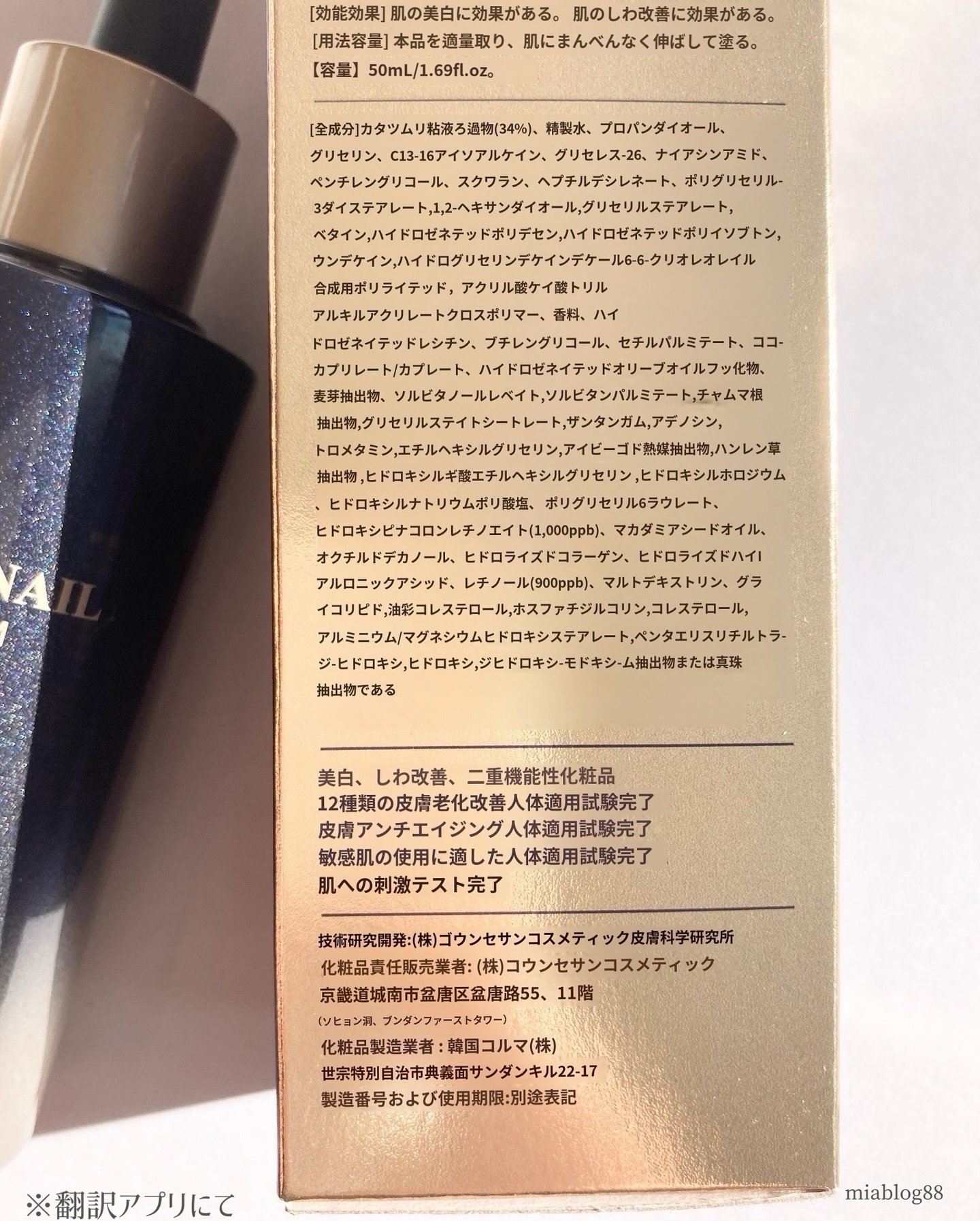 - <50ml> ペンチレングリコール、BG、加水分解ヒアルロン酸、キサンタンガム、スクワラン、香料、トコフェロール、プロパンジオール、カプリリルグリコール、エチルヘキシルグリセリン、ツボクサエキス、水添レシチン、マカデミア種子油、加水分解コラーゲン、ポリアクリル酸Na、コレステロール、レチノール、フェルラ酸、アラントイン、パルミチン酸セチル、精製水、EDTA-2Na、(アクリレーツ/アクリル酸アルキル(C10-30))クロスポリマー、トリ(カプリル酸/カプリン酸)グリセリル、水添ポリデセン、ジメチルイソソルバイド、レチノイン酸ヒドロキシピナコロン、オクチルドデカノール、スクロース、ナイアシンアミド、糖脂質、オレイン酸グリセリル、ラウリルグルコシド、トリデカン、パルミトイルペンタペプチド-4、トロメタミン、アデノシン、グリセレス-26、ビオサッカリドガム-1、加水分解コーンスターチ、マルトデキストリン、パルミチン酸ソルビタン、ハチミツエキス、クエン酸ステアリン酸グリセリル、テトラ(ジ-t-ブチルヒドロキシヒドロケイヒ酸)ペンタエリスリチル、β-グルカン、オリーブ油脂肪酸ソルビタン、ヤマノイモ根エキス、コクシニアインディカ果実エキス、ウンデカン、カタツムリ分泌液、アブラナステロールズ、ホスファチジルコリン、(カプリル/カプリン酸)ヤシアルキル、水添オリーブ油不けん化物、タカサブロウエキス、ザイモモナス培養エキス、バクガエキス、クエン酸トリス(テトラメチルヒドロキシピペリジノール)、ヒドロキシデシルユビキノン、パールエキス、水添C6-14オレフィンポリマー、ウンデシレン酸ヘプチル、ラウリン酸ポリグリセリル-6、ポリエーテル-1、合成サファイア、ミリスチルグルコシド、ステアリン酸水酸化(Al/Mg)、グリセリン,(C13-16)イソアルカン、ジステアリン酸ポリグリセリル-3,1,2-ヘキサンジオール、ステアリン酸グリセリル,ベタイン