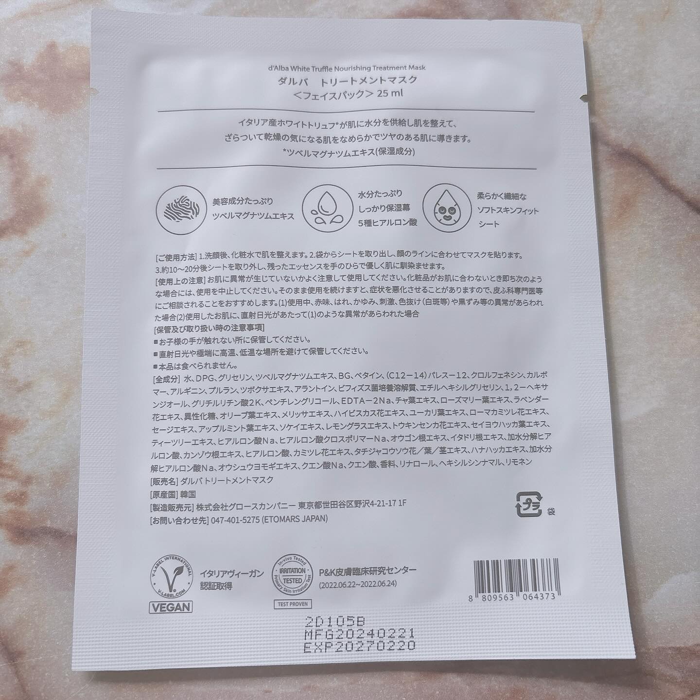 ダルバ ホワイトトリュフダブルマスクパック(鎮静/保湿) |