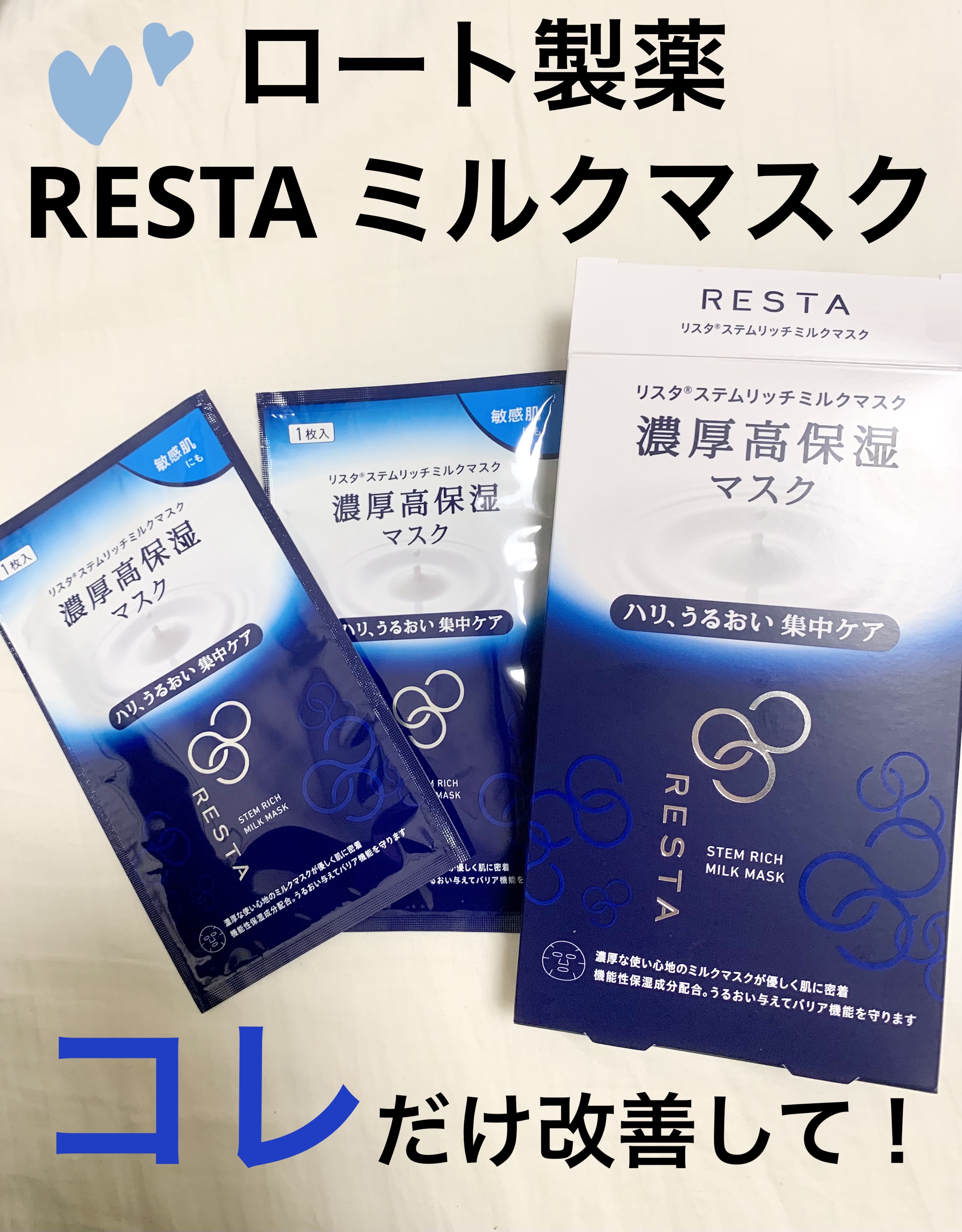 ウエルシアホールディングスとロート製薬共同開発の先端エイジングスキンケアブランド「RESTA(リスタ)」。30代からのお肌悩みを考え、ハリのあるうるおい肌に導いてくれるそう。 ステムリッチクリームはかなり軽い使用感で、ベタベタしないところが好き!冬の朝の保湿にぴったり。 ステムリッチミルクマスクは私の好きなクリーム系シートマスク。これめちゃくちゃ使い心地が良い!濃厚なミルクがヒタヒタに含まれていて、肌をやわらかく保湿してくれて心地良いです。