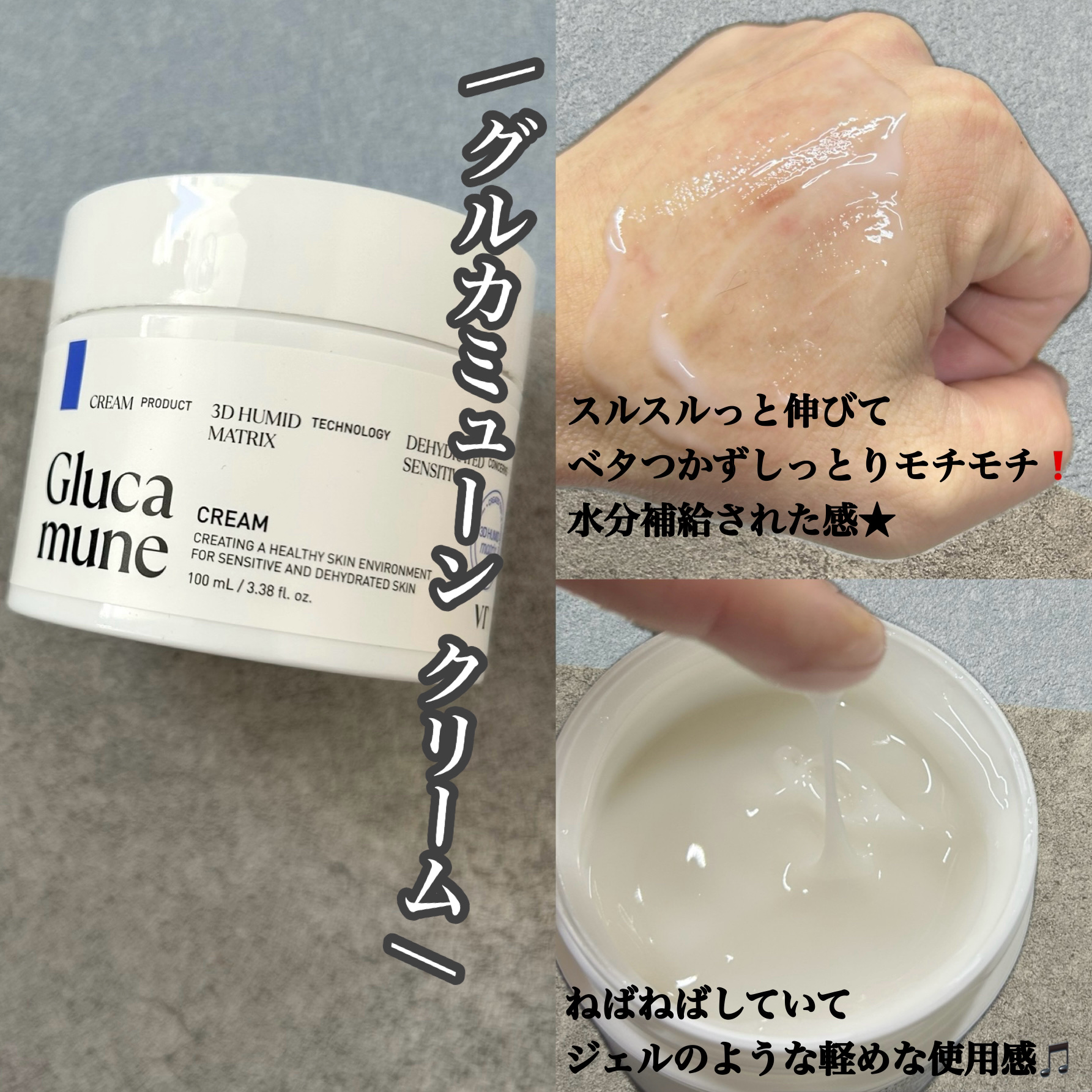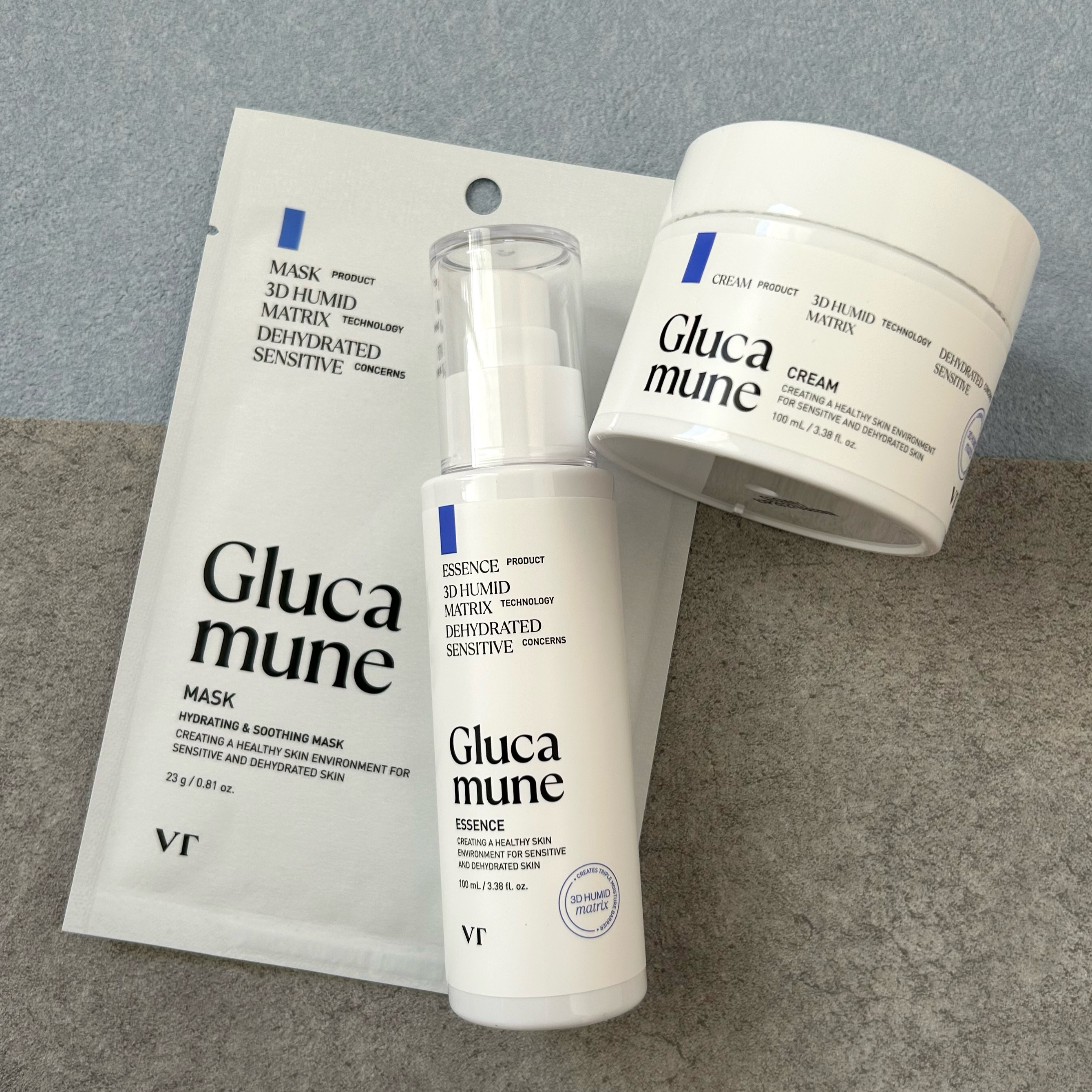 グルカミューンラインはシロキクラゲ由来成分をメイン成分としていて、水分チャージをしてくれるから超乾燥肌さんと超敏感肌さんにおすすめ! エッセンスもクリームもみゅーんと伸びるテクスチャーだけど、ベタつかずにしっとり潤ってくれるのが好き💕 シートが薄いからピターっと密着してプルプルのお肌にしてくれたよ✨