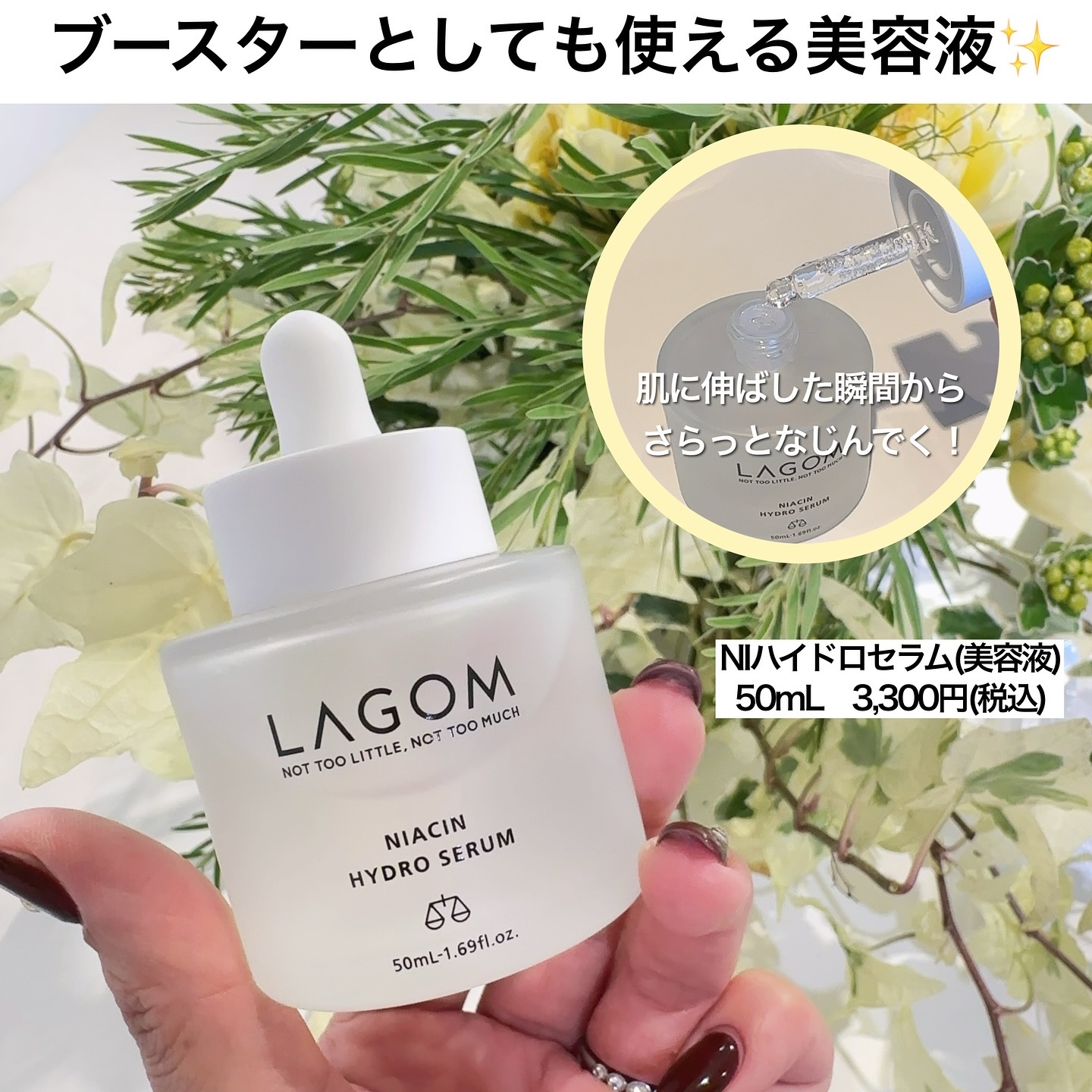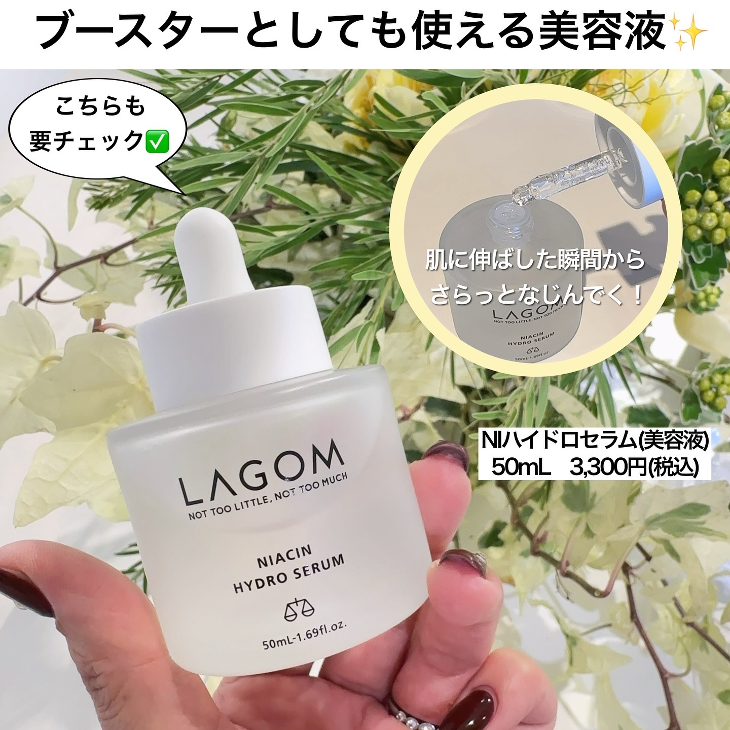 ジューシーなシャルドネの香りがもう美味しいんです😋 朝と夜、どっちも使ってスッキリ!泡だてなくて良いのが楽ちんで助かってます! 新作の美容液NIハイドロセラムも登場♡なんとナイアシンアミド*が5%も配合されてるんですって! 肌のキメをなめらかにして整えてくれます☆
