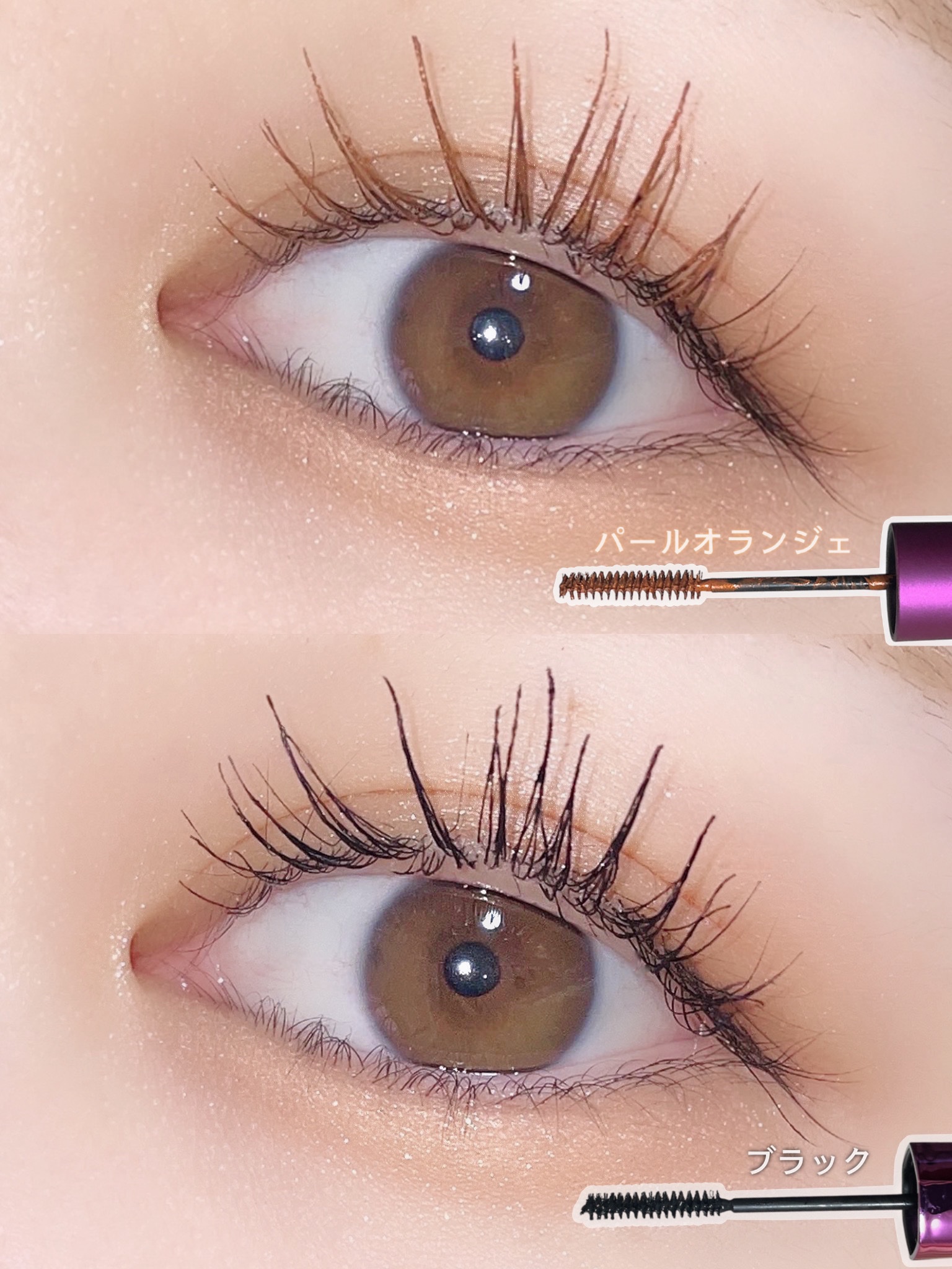 特に細いコームがお気に入りなんです。 限定色のパールオランジェはダークブラウン×オレンジパールでオレンジパールのツヤ質感のある、ホリデーシーズンにぴったりな華やかな印象のきらつやまつ毛へ。 普段ブラックやブラウンのマスカラを使うことが多いけど、ブラウンとはまた一味違ってたくさん使いたくなるカラーです♡