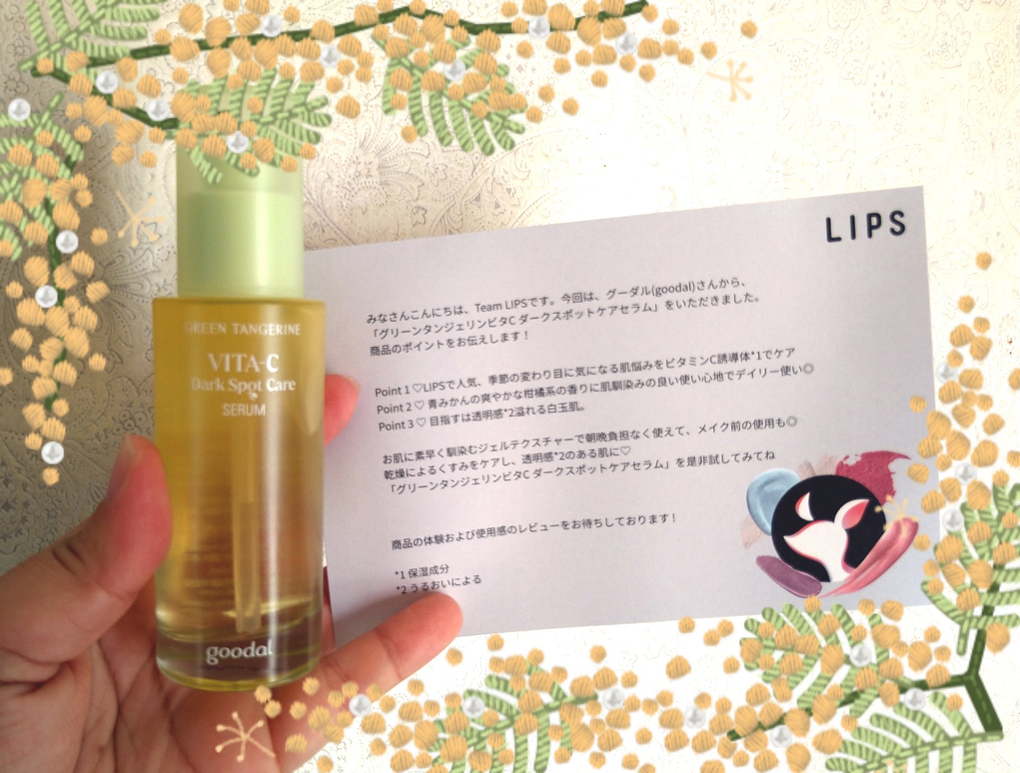 #PR#グーダル#LIPSプレゼントグーダル(goodal)さんから、「グリーンタンジェリンビタCダークスポットケアセラム」をいただきました✨♥季節の変わり目に気になる肌悩みをビタミンC誘導体*1でケア♥青みかんの爽やかな柑橘系の香りに肌馴染...
