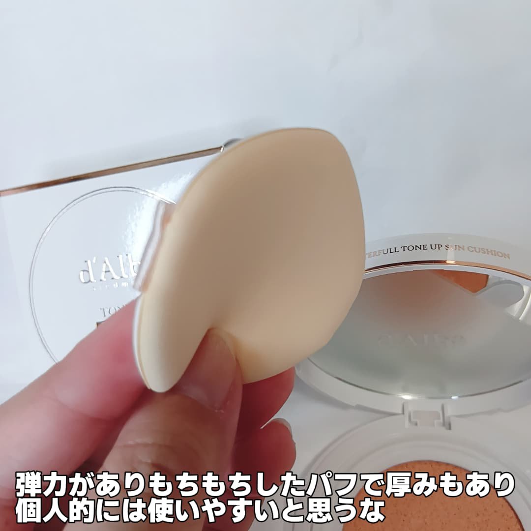 大好きなダルバのクッションファンデ💗 上品なツヤ肌をつくるトーンアップクッション✨ 軽いつけ心地で厚塗り感ナシ👌 みずみずしくしっとり。自然な仕上がりでトーンアップしてくれるよ 手軽に使えてUV対策もできるので手放せないアイテム👏