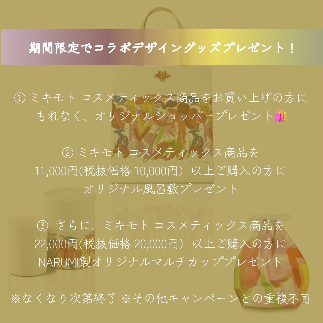 ダウン症の方たち特有の色彩感覚と「調和的感性」を現代社会へ発信するため、さまざまな活動を行なっている「一般社団法人ダウンズタウンプロジェクト」とコラボレーションを実施中✨ 中でもNARUMI製オリジナルマルチカップは通常であれば再利用が難しい真珠の貝殻を使用していて、海の資源を最大限活用したミキモトコスメティックスならではの取り組みなんです🥹 人気のファーストステップ美容液がお得なグランドサイズにて数量限定発売中✨ きらめく星空のようなキラキラジェルが肌をうるおいで満たし整えます。