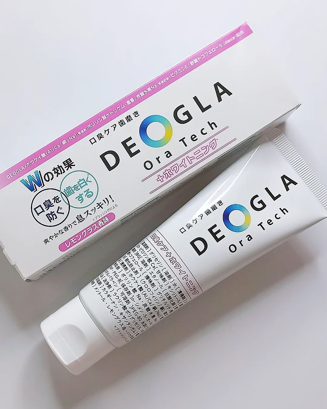 - \独自成分「DEOGLA®︎」(清掃剤)配合/ 創業200年を超える素材メーカーがつくる口臭ケアに特化した歯磨き粉! 製品の特長: 多数のご要望をいただいていた、口臭とホワイトニング *を1本でケアいただけます。ホワイトニング *はもちろん、独自成分DEOGLA配合で口臭にアプローチ。 徹底的にこだわった成分を配合しているので、口臭ケアとしてだけでなくお口のトータルケアにご活用ください。 ミントが苦手な方にもおすすめな、レモングラス香味、控え目な泡立ちでしっかりとブラッシングしていただけます。 ▶独自成分DEOGLA : 化粧品成分名称 ホウケイ酸(Al/Ca/銅/Na) *ブラッシングによる